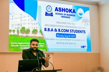 वाराणसी। अशोका इंस्टीट्यूट ऑफ टेक्नोलॉजी एण्ड मैनेजमेंट में अशोका स्कूल ऑफ बिजनेस के बीबीए और बी.कॉम में नवप्रवेशी छात्रों का नौ दिवसीय ओरिएंटेशन प्रोग्राम आयोजित हुआ कार्यक्रम में सभी छात्र छात्राओं का स्वगात सीनियर छात्राओं साक्षी और सौम्या ने उनके माथे पर तिलक लगाकर किया । कार्यक्रम का उद्घाटन अशोका स्कूल ऑफ बिजनेस के मैनेजिंग डायरेक्टर अनुभव मौर्य, डायरेक्टर अशोका डा0 सारिका श्रीवास्तव, डीन अशोका एस0एस0 कुशवाहा, और डीन सी0एस0ई0 डा0 एल0एस0 मौर्या, रजिस्ट्रार अशोका ई0 असीम देव ने दीप प्रज्ज्वलन और माता सरस्वती की मूर्ति पर पुष्प अर्पितकर किया। मंचासीन अतिथियों का स्वागत पौध भेंटकर किया गया संबोधन के क्रम में डायरेक्टर अशोका डा0 सारिका श्रीवास्तव ने नवागंतुक छात्र छात्राओं को इंस्टीट्यूट के बारे में जानकारी देते हुए बताया कि इंस्टीट्यूट में आर्टीफीशिल इंटेलिजेंस के माध्यम से आप अपनी प्रतिभा को पूरी तरह से मूल्यवान बना सकते हैं। छात्रों को अपनी पढाई पर विशेष ध्यान देना होगा । अशोका इंक्युबेशन सेंटर आपकी अंदर की प्रतिभा को बेहतर बनाएगा जिससे अपको समय समय पर विभिन्न उद्योगों के लिए इंटर्नशिप के अवसर मिलेंगे ,ट्रेनिंग एण्ड प्लेसमेंट सेल आपकी योग्यता के माध्यम से देश की बडी बडी कंपनियों में उच्च पदों पर नियुक्ति के अवसर उपलब्ध कराएगा ताकि आप अपना भविष्य संवार सकें और एक सफल बिजनेसमैन व उद्यमी बनें। अशोका स्कूल ऑफ बिजनेस के मैनेजिंग डायरेक्टर अनुभव मौर्या ने छात्रों को बेहतर आचरण के साथ परिसर में होने वाले विभिन्न कार्यक्रमों में बढचढकर हिस्सा लेने के लिए प्रोत्साहित करते हुए कहा इस दौरान आप आपने मित्रों के साथ परिसर के माहौल को अपने घर जैसा बनाकर रखेंगे सभी गुरुओं एवं अपने मित्रों का सम्मान करेंगे । इंस्टीट्यूट की कैंटीन में आपको बेहतर माहौल मिलेगा ,जिस खेल में आपकी रुचि होगी उस खेल में भाग लें इस तरह कालेज में अपने तीन साल जो आप बिताएंगे उसमें हम चाहेंगे कि आप अपनी पढाई पर विशेष घ्यान देकर अपनी प्रतिभा को निखारने का काम करें और सफलता प्राप्त करें। डीन सी0एस0ई0 अशोका डा0 एल0एस0 मौर्या ने सभी अतिथियों का धन्यवाद ज्ञापित करते हुए छात्रों के बेहतर भविष्य की कामना की कार्यक्रम का आयोजन डा0 शालिनी सिंह और संचालन बी0 काम की एच0ओ0डी0 डा सारिका सिंह और सुष्मिता श्रीवास्तव ने किया । इस दौरान कार्यक्रम में एच0ओ0डी0 डा0 अश्वमेध मौर्या, आई0क्यू0ए0सी0 एसोसिएट डीन गौरव कुषवाहा, सैक प्रेसिडेंट डा0 शर्मीला सिंह, बी0बी0ए0 एच0ओ0डी0 रविकांत जायसवाल, ट्रेनिंग एण्ड प्लेमेंट सेल से निशा पाण्डेय , रचना सिंह सहित अन्य शिक्षक एवं छात्र, छात्राएं उपस्थित रहे।