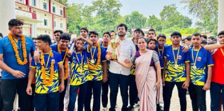 गाजीपुर। प्रयागराज शहर के नैनी में 1 से 5 अगस्त के बीच आयोजित हो रहे सीबीएसई जोन -पांच फुटबॉल अंडर-17 प्रतियोगिता में शानदार खेल प्रदर्शन-निदर्शन के दम पर गाजीपुर की मोहम्मदाबाद तहसील क्षेत्र में स्थित डालिम्स सनबीम स्कूल ,गांधीनगर (लट्ठूडीह) की फुटबॉल टीम के खिलाड़ियों ने फाइनल में प्रयागराज स्थित खेल गांव पब्लिक स्कूल को करारी हार देकर सीबीएसई कलस्टर-5 अंडर-17 ट्रॉफी पर कब्ज़ा जमा लिया। प्रयागराज शहर के नैनी में स्थित दिल्ली पब्लिक स्कूल के क्रीड़ा-स्थल पर डालिम्स सनबीम स्कूल, गांधीनगर, गाजीपुर की टीम का पहला मैच बाइ रहा. तत्पश्चात दूसरा लीग मैच के रूप में आर्मी पब्लिक स्कूल, नई छावनी, प्रयागराज की टीम से भिड़ंत हुई, जिसमें डालिम्स सनबीम स्कूल गांधीनगर की टीम ने प्रतिद्वंद्वी टीम को 3-1 से ज़ोरदार तरीके से हराया. द्वितीय स्थान खेल गांव पब्लिक स्कूल, प्रयागराज, तृतीय स्थान सर्वोदय पब्लिक स्कूल , आजमगढ़ एवं डिवाइन ग्लोबल स्कूल, जमानिया, गाजीपुर ने प्राप्त किया। फाइनल मैच में डालिम्स सनबीम स्कूल गांधी नगर को प्रतिवादी फुटबॉल टीम के रूप में खेल गांव पब्लिक स्कूल प्रयागराज की टीम मिली, जिसे अपनी परिपक्व खेल प्रदर्शन, सटीक समझ, प्रतिबद्ध क्षमता, शारीरिक और मानसिक एकरुपता, रणनीति व कौशल, खेल भावना, दृढ़ता और निरंतर अभ्यास वाले आत्मबल से पराजित कर दिया। मालूम हो कि सीबीएसई कलस्टर-5 फुटबॉल प्रतियोगिता प्रयागराज शहर में आयोजित है, जिसमें उत्तर प्रदेश के चंदौली, सोनभद्र, मिर्ज़ापुर, ग़ाज़ीपुर, वाराणसी, भदोही, मऊ, आज़मगढ़, बलिया, गोरखपुर, देवरिया, कुशीनगर, महाराजगंज, कौशाम्बी और प्रयागराज ज़िले में स्थित सीबीएसई बोर्ड से सम्बद्ध स्कूलों की कुल 40 फुटबॉल टीमों ने प्रतिभाग किया। डालिम्स सनबीम स्कूल गांधी नगर के खेल प्रशिक्षक राम नारायण राय के प्रशिक्षकीय निर्वहन में श्रमलब्ध फुटबॉल दल में कप्तान के रूप में अनीश गुप्ता, शौर्य पांडेय, उज्ज्वल गुप्ता, प्रशांत राय, आयुष गुप्ता, मोहम्मद अब्बास, समीर हुसैन, नीतीश कुमार, अभिजीत केसरी, वंश राज ओझा, आदर्श गुप्ता, किशन कुमार गुप्ता, सूर्यांश पांडेय, सार्थक यादव और हिमांशु कुशवाह ने अपनी-अपनी खेल क्षमता और दक्षता का गवाक्ष प्रदर्शन किया। प्रयागराज शहर के नैनी स्थित दिल्ली पब्लिक स्कूल के खेल संकुल में सीबीएसई बोर्ड के प्रयागराज हेड अनिल कुमार जैन, दिल्ली पब्लिक स्कूल प्रयागराज के निदेशक सोनू सिंह और दिल्ली पब्लिक स्कूल प्रयागराज की प्रधानाचार्या डॉ. सुजाता सिंह के कर-कमलों से जीत की ट्रॉफी स्वीकार कर डालिम्स सनबीम स्कूल गांधीनगर ग़ाज़ीपुर की जीत का जश्न मनाया। ग़ौरतलब है कि डालिम्स सनबीम स्कूल गांधी नगर की टीम ने प्रयागराज शहर में आयोजि