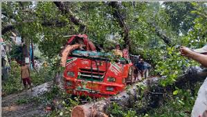 लखनऊ। बाराबंकी जिला मुख्यालय से नौ किलोमीटर दूर हैदरगढ़ मार्ग पर रोडवेज की अनुबंधित बस पर गूलर का पेड़ गिर गया। पेड़ बस के अगले हिस्से पर गिरा। हादसे में चार महिलाओं समेत पांच लोगों की मौत हो गई। एक महिला की पहचान शहर के मोहल्ला गुलरिया गार्दा की निवासी शिक्षा मेहरोत्रा (53) के रूप में हुई है। तीन अन्य महिलाओं की आयु 40 से 45 साल के मध्य है। पेड़ काटकर लोगों को निकाला गया। बताया जा रहा है कि हादसे के समय बस में 40 लोग सवार थे। हादसे के बाद कई यात्री खिड़की से कूदकर निकले। बारिश के दौरान हुए हादसे के कारण राहत व बचाव कार्य में देर लगी। सवारियां लेकर बाराबंकी से हैदरगढ़ जा रही बस पर करीब साढ़े 10 बजे जैदपुर थाना क्षेत्र की ग्राम हरख में स्थित राजा बाजार के पास पेड़ गिर पड़ा। पेड़ इतनी तेज गिरा कि बस के आगे का हिस्सा क्षतिग्रस्त हो गया। बारिश के बीच में पहुंचे ग्रामीणों ने पुलिस और वन विभाग को सूचना दी। बस के अंदर फंसे लोगों की चीखपुकार दिल को दहला देने वाली थी। पेड़ काटने का काम वन विभाग के कर्मचारियों ने किया। ग्रामीण सहयोग में लगे रहे। सीएमओ अवधेश कुमार यादव ने बताया कि हादसे में चार महिला व एक ड्राइवर सहित कुल पांच की मौत हुई है। बस में सवार एक यात्री नादिया ने बताया कि वो देवाशरीफ होकर वापस लौट रही थीं कि रास्ते में हादसा हो गया। हादसे में उनकी मां घायल हुई हैं। कोटवा निवासी शिक्षिका शैल कुमारी ने बताया कि वह असंद्रा ट्रेनिंग के लिए जा रही थीं। अचानक बस चालक ने जोर से आवाज लगाई और उसी समय बस पर पेड़ गिर चुका था, जिससे कई यात्री घायल हो गए। उन्होंने बताया कि लगभग डेढ़ घंटे बाद पेड़ को काटकर हटाया गया तब यात्री बाहर निकल पाए।