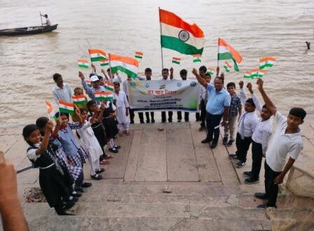 गाजीपुर। जिला गंगा समिति द्वारा चीतनाथ घाट पर हर घर तिरंगा कार्यक्रम का आयोजन किया गया। कार्यक्रम में डीएवी इंटर कॉलेज के बच्चों ने हाथ में तिरंगा झंडा के साथ भाग लेते हुए ‘‘हर घर तिरंगा- हर घाट तिरंगा‘‘ का नारा लगाया एवं नदी संरक्षण का भी संदेश दिया। कार्यक्रम के दौरान डीएवी इंटर कॉलेज के प्रधानाचार्य हरिशंकर द्वारा सभी को गंगा स्वच्छता की शपथ दिलाई गई। जिला परियोजना अधिकारी नमामि गंगे बृजेश कुमार श्रीवास्तव ने बताया कि हर घर तिरंगा 2025 अभियान 02 से 15 अगस्त 2025 तक आयोजित किया जा रहा है, इस अभियान के अंतर्गत जिला गंगा समिति द्वारा गंगा घाटों पर तिरंगा यात्रा, झंडा रोहण तथा अन्य गतिविधियों का आयोजन किया जा रहा है। इस अवसर पर शंकर पांडे, रवि जी, विनोद कुमार अध्यापक आदि लोग उपस्थित रहे।
