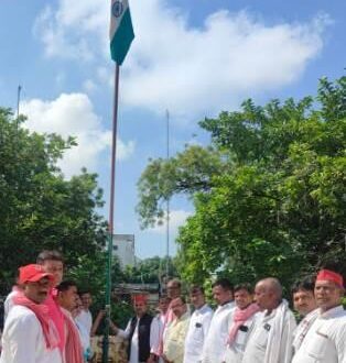 गाजीपुर। 79वें स्वतंत्रता दिवस के अवसर पर आज दिनांक 15अगस्त को समाजवादी पार्टी कार्यालय समता भवन और लोहिया भवन पर जिलाध्यक्ष गोपाल यादव ने राष्ट्रीय ध्वजारोहण किया। इस अवसर पर पार्टी के सभी कार्यकर्ताओं ने आजादी की लड़ाई के रणबांकुरों और शहीदों को नमन करते हुए देश की आजादी, एकता और अखंडता को अक्षुण्ण बनाए रखने का संकल्प लिया। इस अवसर पर पुर्व विधायक खुर्शीद अहमद,पुर्व जिलाध्यक्ष रामधारी यादव, रविन्द्र प्रताप यादव, अशोक कुमार बिन्द, सुशील जायसवाल,अरूण कुमार श्रीवास्तव, सिकंदर कन्नौजिया,विभा पाल, तहसीन अहमद,असलम हुसैन ,बिन्दु बाला बिंद, आत्मा यादव,पूजा गौतम, डॉ समीर सिंह,कंचन रावत, अजय भारती,अनिता यादव, अम्बरीष यादव,लल्लन राम ,इलियास अहमद,जगत मोहन बिंद ,सुग्गु यादव, रामयश यादव, शंकर सिंह यादव, गोपाल लाल श्रीवास्तव, रामप्रताप यादव, दिनेश सिंह यादव,अशोक यादव,सुनीता यादव,जानकी प्रजापति,ममता यादव,सतीश पासवान,अजय कुमार यादव, संतोष यादव, हीरा लाल सिंह यादव, धर्मचंद यादव, विनोद बिंद एडवोकेट,पवन कुमार सिंह यादव, विंध्याचल यादव, अतुल कुमार यादव, बृजकिशोर सिंह यादव,माखन पाल,मुन्नू दूबे, दयाशंकर सिंह यादव, उपेन्द्र यादव आदि उपस्थित थे। इस अवसर पर आयोजित कार्यक्रम का संचालन जिला महामंत्री कन्हैया लाल विश्वकर्मा ने किया।