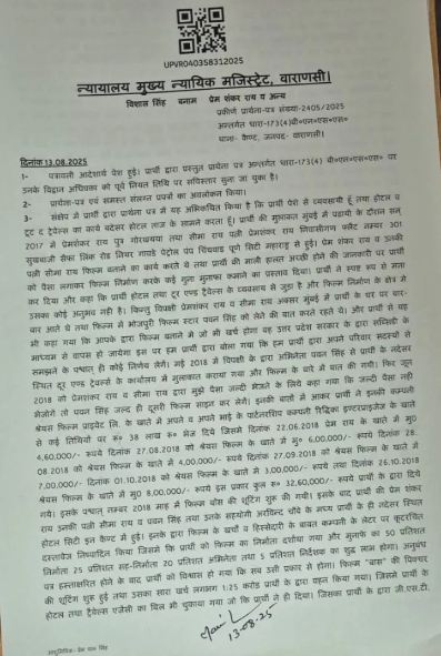 वाराणसी। जिले में भोजपुरी सुपरस्टार पवन सिंह के खिलाफ मुकदमा दर्ज किया जाएगा। कोर्ट के निर्देश पर मुकदमा दर्ज होगा। फिल्म में निवेश के नाम पर ठगी के आरोप में केस दर्ज करने का निर्देश दिया गया है। मामले को लेकर व्यवसायी ने कोर्ट में न्याय की गुहार लगाई थी। जिसके बाद जिला न्यायिक मजिस्ट्रेट द्वितीय की कोर्ट ने कैंट थाने में धोखाधड़ी का मुकदमा दर्ज करने का आदेश दिया है।