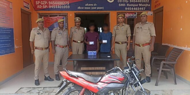 गाजीपुर। रामपुर मांझा पुलिस ने बैंकमित्र लूटकांड में संलिप्त दो मुखबिरो को गिरफ्तार किया है। प्रभारी निरीक्षक थाना रामपुर माँझा, उ0नि0 मोतीलाल मय हमराह द्वारा थाना स्थानीय पर पंजीकृत मु0अ0सं0 086/2025 धारा 309(4) ,317 (2) व 61 (क) (ख) बीएनएस से संबंधित प्रकाश में आए 02 अभियुक्तगण 1. रोहित चौधरी पुत्र विनोद चौधरी नि0 ग्राम सरौली थाना करण्डा जनपद गाजीपुर उम्र 22 वर्ष 2. ओमकार प्रजापति पुत्र कैलाश प्रजापति नि0 ग्राम धरवां थाना रामपुर मांझा जनपद गाजीपुर उम्र 23 वर्ष को मुखबीर खास की सूचना पर चकेरी बुढ़उ बाबा मंदिर के पास से गिरफ्तार किया गया । गिरफ्तारशुदा अभियुक्तगण के विरूद्ध अग्रिम विधिक कार्यवाही की जा रही है । गिरफ्तार अभियुक्तगण का नाम पता– 1. रोहित चौधरी पुत्र विनोद चौधरी नि0 ग्राम सरौली थाना करण्डा जनपद गाजीपुर उम्र 22 वर्ष] 2. ओमकार प्रजापति पुत्र कैलाश प्रजापति नि0 ग्राम धरवां थाना रामपुर मांझा जनपद गाजीपुर उम्र 23 वर्ष