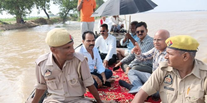 गाजीपुर। गंगा नदी का जलस्तर बढ़ जाने के कारण बाढ़ की स्थिति उत्पन्न हो गयी है। जिलाधिकारी अविनाश कुमार के निर्देश के क्रम में उपजिलाधिकारी सदर मनोज पाठक एंव उपजिलाधिकारी जमानियां ज्योति चौरसिया, उपजिलाधिकारी सेवराई संजय यादव, उपजिलाधिकारी मोहम्मदाबाद हर्षिता तिवारी ने बाढ़ से प्रभावित गॉवो का स्थलीय निरीक्षण किया। निरीक्षण के दौरान उपजिलाधिकारी सदर मनोज पाठक ने शेरपुर, तुलसीपुर, लखनचंदपुर, महबलपुर, तथा उपजिलाधिकारी जमानियां ज्योति चौरसिया ने बाढ प्रभावित गांव मलसा, उपजिलाधिकारी सेवराई संजय यादव ने बाढ प्रभावित ग्राम अठहठा का निरीक्षण किया गया। अपर जिलाधिकारी वि0रा0 दिनेश कुमार ने बताया कि जनपद गाजीपुर के अभी तक प्रभावित 07 ग्राम बाढ से प्रभावित है जिसके सम्पर्क मार्ग पानी आ जाने के कारण प्रभावित हुए है। सम्पर्क मार्ग में पानी आ जाने के कारण नौकाओं का संचालन प्रारम्भ कर दिया गया है। उक्त बाढ़ प्रभावित ग्रामों में राहत एवं बचाव हेतु कार्ययोजना बनाई गयी है, जिसका क्रियान्वयन प्रारम्भ हो गया है। जनपद मुख्यालय में बाढ कन्ट्रोल रूम स्थापित किया गया है, जिसका नम्बर-05482224041, 9454417103 है, प्रभावित क्षेत्रो मे बाढ़ चौकियां व बाढ़ शरणालय क्रियाशील है। बाढ़ चौकियों व बाढ़ शरणालयों में मूलभूत सुविधाओं- स्वच्छ पेय जल, विद्युत शौचालय, भोजन, गद्दों, जनरेटर आदि की व्यवस्था की गयी है। चिकित्सीय उपचार हेतु चिकित्सक व पशु चिकित्सक आवश्यक दवाओं के साथ शरणालयों में उपस्थित है। पशुओं के लिये चारा/भूसा की व्यवस्था की गयी है। राजस्व विभाग, पुलिस विभाग, पंचायत विभाग, ,खाद्य-रसद विभाग व अन्य विभाग के अधिकारी/कर्मचारियों की तैनाती की गयी है।