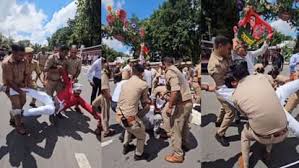 लखनऊ। बाराबंकी के श्रीराम स्वरूप विश्वविद्यालय में प्रदर्शन कर रहे अखिल भारतीय विद्यार्थी परिषद के कार्यकर्ताओं और छात्रों पर लाठीचार्ज के विरोध में सपा कार्यकर्ताओं ने लखनऊ में प्रदर्शन किया और राजभवन के सामने धरना दिया। इस दौरान उन्होंने राज्य सरकार के खिलाफ जमकर नारेबाजी की। पुलिसकर्मियों ने बलप्रयोग करते हुए प्रदर्शनकारियों को राजभवन के सामने से उठाया और हिरासत में ले लिया। इसके बाद उन्हें गाड़ियों में भरकर ईको गार्डेन भेजवा दिया। प्रदर्शनकारी योगी सरकार के खिलाफ नारेबाजी कर रहे थे। श्रीराम स्वरूप विश्वविद्यालय में एलएलबी की डिग्री की वैधता को लेकर सोमवार को प्रदर्शन कर रहे छात्रों पर लाठीचार्ज कर दिया गया था। जिस पर विवाद होने के बाद मुख्यमंत्री योगी आदित्यनाथ की नाराजगी पर सीओ सिटी हर्षित चौहान को हटा दिया गया था। शहर के आरके राणा और गदिया चौकी इंचार्ज को लाइन हाजिर कर दिया गया। मामले की जांच अयोध्या के मंडलायुक्त राजेश कुमार को सौंपी गई। मंडलायुक्त बुधवार शाम को अपनी रिपोर्ट सौंपेंगे।