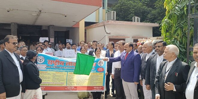 गाजीपुर! 13 सितंबर को उच्चतम न्यायालय के निर्देशानुसार राष्ट्रीय लोक अदालत का आयोजन किया जाएगा। इसी को लेकर गुरुवार की सुबह 10 बजे जनपद न्यायाधीश धर्मेंद्र कुमार पाण्डेय ने न्यायालय परिसर से जागरूकता रैली को हरी झंडी दिखाकर रवाना किया। इस दौरान जनपद न्यायाधीश ने कहा कि रैली का उद्देश्य लोगों को जागरूक करना है, ताकि छोटे-मोटे वाद जैसे मोटर व्हीकल, बिजली बिल, घरेलू विवाद, पंजीयनवाद और पैमाइश आदि से जुड़े मामलों का निपटारा सुलह और समझौते के माध्यम से किया जा सके। उन्होंने बताया कि पिछली बार एक लाख से ज्यादा वादों का निपटारा लोक अदालत में कराया गया था, वहीं इस बार 1 लाख 10 हजार तक वादों को निपटाने का लक्ष्य रखा गया है। जनपद न्यायाधीश धर्मेंद्र पाण्डेय ने लोगों से अपील की कि मौजूदा समय विकास का समय है, इसलिए छोटे-मोटे झगड़े और आपसी मतभेदों को खत्म कर, राष्ट्रीय लोक अदालत के माध्यम से समाधान निकालें और अपने समय को बेवजह विवादों में बर्बाद करने के बजाय विकास पर ध्यान केंद्रित करें