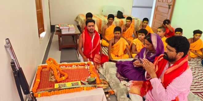 गाजीपुर। सत्यदेव कॉलेज के प्रबन्ध निदेशक डॉक्टर सानंद सिंह और डॉक्टर प्रीति सिंह ने स्वामी योगी आनंद जी और देव पूजन से किया शुभारंभ। आज डॉक्टर सानंद सिंह ने अपनी बात रखी और कहा कि गाजीपुर की महान धरती जो सदैव से ही ऋषियों मुनियों को आकर्षित करती रही है ,जहां की पुण्य भूमि पर मां गंगा सभी को सर्वशुलभ उत्तम स्वास्थ्य दर्शन देती हैं । ऐसी ही माटी पर गीता गुरुकुल मिशन मिशिगन अमेरिका के संस्थापक, पूज्य गुरुदेव स्वामी योगी आनंद जी का संकल्प ज्योति प्रकाश में बदल रहा है। उनकी वर्षों की तपस्या ने आज मूर्त रूप लिया है । अपने गांव की माटी पर ब्राह्मण सुकुमार बटुक को ज्ञानवान ब्राह्मण बनाने का उन्होंने मार्ग दिया है । स्वामी जी लगातार बचपन से ही पावन ग्रंथ गीता को लेकर के समाज में अनेक कक्षाएं भी लेते रहे हैं । अनेकों सोशल मीडिया और यूट्यूब पर उनकी बोली हुई वाणी है। अपने प्रभाव से हजारों शिष्यों को देश और दुनिया में पावन गीता से सुपरिचित करने का नाम है योगी आनंद जी। सत्यदेव ग्रुप आफ कॉलेजेस के वह पैटर्न सुप्रीमो है और हम सभी के पारिवारिक आचार्य भी हैं । अत्यंत आदरणीय हैं। आज उनके आमंत्रण पर उसे वेद विद्यालय गुरुकुल के प्रथम कक्षा के शुभारंभ पर सपत्नीक पहुंचने का शुभ अवसर प्राप्त हुआ। हम लोगों ने पूजन किया और सभी का अभिनंदन किया आज से वेद विद्यालय गुरुकुल का शुभारंभ हुआ। पूजन अर्चन और वह ज्ञान की है परंपरा हम सब का मार्ग पावन करें ऐसी ही प्रार्थना हम करते हैं। ब्राह्मण का होना, संस्कारों का होना है।