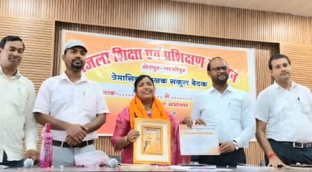 गाज़ीपुर। 5 सितम्बर को मुख्यमंत्री योगी द्वारा सम्मानित राज्य अध्यापक पुरस्कार से सम्मानित अध्यापिका का सम्मान समारोह का कार्यक्रम निरंतर जारी है दिनांक 8 सितंबर 2025 को डायट सैदपुर पर त्रैमासिक शिक्षण संकुल मीटिंग संपन्न हुई उसके पश्चात डायट के सभी सम्मानित प्रवक्ताओं ने राज्य अध्यापक पुरस्कार प्राप्त करने की खुशी में गाजीपुर की कंपोजिट स्कूल डिलिया की सहायक अध्यापिका डॉ रितु श्रीवास्तव को मोमेंटो ,पुष्प माला से सम्मानित किया तथा उनके उज्जवल भविष्य की शुभकामनाएं दी इस तरह से सहायक अध्यापिका का सम्मान जगह जगह आयोजित किया जा रहा है इसी क्रम मेंसामूहिक रुद्राभिषेक पीठ काशी सारंगनाथ महादेव मंदिर सारनाथ के द्वारा एक सम्मान समारोह आयोजित किया गया जिसमें मानद सदस्य वाराणसी विकास प्राधिकरण अंबरीश सिंह भोला द्वारा मोमेंटो शाल और पुष्पमाल द्वारा डॉ रितु श्रीवास्तव को राज्य अध्यापक पुरस्कार 202प्राप्त करने के लिए सम्मानित किया गया इस कार्यक्रम में काशी कुष्ठ सेवा संघ के प्रमुख रमेश बाबा जी भी उपस्थित थे उनका भी आशीर्वाद प्राप्त किया सामूहिक रुद्राभिषेक के पीठ प्रमुख राहुल सिन्हा जी तथा उनकी टीम को बहुत-बहुत धन्यवादl