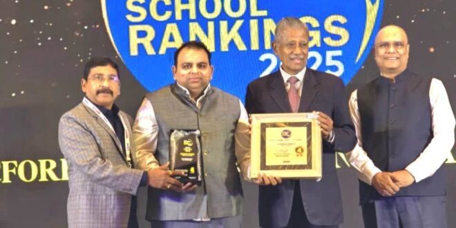 गाजीपुर। सनबीम स्कूल महाराजगंज गाजीपुर को राजधानी दिल्ली में कल दिनांक 10/09/2025 को आयोजित सनबीम स्कूल गाज़ीपुर को सी-फोर रैंकिंग्स द्वारा क्षेत्र के विद्यालयों में उत्कृष्ट प्रदर्शन के लिए सम्मानित किया गया है। उनकी 2025 की डे-को-एड स्कूल्स रैंकिंग में सनबीम स्कूल गाज़ीपुर को प्रथम स्थान प्राप्त हुआ है। यह पुरस्कार, सनबीम स्कूल गाज़ीपुर को क्षेत्र के सह-शैक्षिक डे स्कूल्स में शीर्ष स्थान पर स्थापित करता है, जिसे सी-फोर रैंकिंग्स द्वारा निर्धारित किया गया है। यह पुरस्कार विद्यालय को शिक्षा के क्षेत्र में उत्कृष्ट योगदान, अनुशासन, गुणवत्तापूर्ण शिक्षण, नवाचारपूर्ण गतिविधियों तथा छात्रों की प्रतिभा को प्रोत्साहित करने के लिए प्रदान किया गया। इस अवार्ड फंक्शन में विद्यालय के निदेशक नवीन सिंह शामिल थे । निदेशक नवीन कुमार सिंह जी ने कहा कि यह सम्मान पूरे विद्यालय परिवार की कड़ी मेहनत और सामूहिक प्रयास का परिणाम है। उन्होंने शिक्षकों, अभिभावकों और विद्यार्थियों को बधाई देते हुए कहा कि सनबीम स्कूल महाराजगंज आगे भी शिक्षा के क्षेत्र में नए आयाम स्थापित करता रहेगा। कार्यक्रम में विद्यालय परिवार से चेयरमैन कृष्णपाल सिंह जी, वाइस चेयरमैन शोभा सिंह जी, निदेशक नवीन कुमार सिंह जी, निदेशक स्मिता सिंह जी, प्रधानाचार्या अर्चना कुमारी जी, उप-प्रधानाचार्या तहसीन आब्दि जी, एकेडमिक हेड सरोन जालान जी, को-ऑर्डिनेटर सानिया जी तथा सिदरा शुभ्दा जी उपस्थित रहीं। सभी ने विद्यालय की इस उपलब्धि पर प्रसन्नता व्यक्त की और विद्यार्थियों को निरंतर उत्कृष्टता की ओर प्रेरित किया रहे।