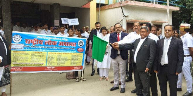 गाजीपुर। लोक अदालत की रैली को जनपद न्यायाधीश ने हरी झंड़ी दिखाकर रवाना किया। आगामी 13.09.2025 को आयोजित राष्ट्रीय लोक अदालत के व्यापक प्रचार-प्रसार हेतु रैली को जनपद न्यायाधीश, गाजीपुर धर्मेन्द्र कुमार पाण्डेय द्वारा हरी झण्डी दिखाकर रवाना किया गया। जनपद न्यायाधीश के निर्देशानुसार उक्त रैली के माध्यम से जनपद गाजीपुर के दुरूस्थ अंचलों तक आम जन को लोक अदालत से होने वाले लाभ के विषय में अवगत कराया जायेगा। उनके द्वारा जनपद गाजीपुर के आमजन से यह अपील की गयी कि ऐसे सभी व्यक्ति, जिनके छोटे-छोटे मामले वर्षों से लम्बित हैं, वे लोक अदालत में उन्हें निस्तारित कराकर इस अवसर का लाभ उठायें। राष्ट्रीय लोक अदालत के नोडल अधिकारी अपर जिला जज, कोर्ट सं0-01, शक्ति सिंह द्वारा लोक अदालत के विषय में जानकारी देते हुये यह बताया गया कि दिनांक 13.09.2025 को राष्ट्रीय लोक अदालत का आयोजन किया गया है, जिसमें मुख्य कार्यक्रम जनपद न्यायालय परिसर में आयोजित किया गया है। उनके द्वारा यह भी बताया गया कि लोक अदालत में मुख्यतः समस्त प्रकार के शमनीय आपराधिक मामले चेक बाउंस से संबंधित धारा 138 एन.आई. एक्ट के वाद, बैंक रिकवरी वाद, मोटर दुर्घटना प्रतिकर वाद, श्रमवाद, बिजली एवं जल के बिल से संबंधित शमनीय दण्ड वाद, वैवाहिक / पारिवारिक वाद, भूमि अध्याप्ति वाद, सेवानिवृत्ति के परिलाभों संबंधी मामले, राजस्व वाद, अन्य सिविल वाद आदि मामले निस्तारित किये जायेंगे, यही नहीं बैंकों द्वारा एन०पी०ए० खाता धारकों को विशेष छूट प्रदान कर उनका समाधान किया जायेगा। इस अवसर पर प्रधान न्यायाधीश, परिवार न्यायालय रुपेश रंजन, पीठासीन अधिकारी एम.ए.सी.टी. संजय हरि शुक्ला, अपर जिला जज विजय पाल, सचिव जिला विधिक सेवा प्राधिकरण विजय कुमार, अध्यक्ष व सचिव सिविल बार संघ सहित बड़ी संख्या में न्यायिक अधिकारीगण व अधिवक्ता उपस्थित रहे।
