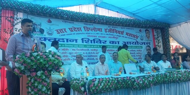 गाजीपुर। अभियन्ता दिवस पर बृहद रक्तदान शिविर का आयोजन/ सम्पूर्ण उत्तर प्रदेश में एक दिन में सर्वाधिक रक्तदान कराने का कीर्तिमान गाजीपुर के नाम, सभी सहयोगियों का हृदय से आभार व्यक्त करते हुए डिप्लोमा इंजीनियर्स महासंघ गाजीपुर द्वारा आयोजित कार्यक्रम के मुख्य अतिथि जिलाधिकारी अविनाश कुमार ने महासंघ के सामाजिक कार्यक्रम की सराहना की तथा महापुरुषों के चित्र पर माल्यार्पण एवं दीप प्रज्वलन कर रक्तदान शिविर का फीता काटकर शुभारम्भ किया। विगत तीन साल से महासंघ की स्थानीय शाखा का रक्तदान में प्रथम स्थान रहा है। रक्तदान शिविर में शाम 6.00 बजे तक 156 यूनिट रक्तदान हुआ। रक्तदान शिविर में रक्तदान करने वाले एवं पूर्व के रक्तदाताओं को प्रशस्ति पत्र/सम्मान पत्र प्रदान कर सम्मानित किया। आमन्त्रित समस्त जिला स्तरीय, मण्डल स्तरीय, कार्यालयध्यक्ष को अंग वस्त्र, स्मृति चिन्ह, बैज अलंकरण, प्रदान कर किया गया सम्मानित। विगत डेढ़ दशक से इस पुनीत कार्यक्रम के मुख्य प्रेरक अम्बिका दुबे पूर्व जिला अध्यक्ष राज्य कर्मचारी संयुक्त परिषद को विशेष सम्मान प्रदान कर जिलाधिकारी ने किया सम्मानित। पी जी कालेज, के प्राचार्य प्रो डा राघवेंद्र कुमार पाण्डेय ने स्वयं रक्तदान कर समाज को इस पुनीत कार्य में योगदान करने की अपील की। इस पुनीत कार्यक्रम के आयोजक/संयोजक एवं उत्तर प्रदेश डिप्लोमा इंजीनियर्स महासंघ गाजीपुर के जिला अध्यक्ष इ.सुरेन्द्र प्रताप ने समस्त आगंतुको, सम्मानित वरिष्ठ नागरिकों, अधिकारियों, जिला प्रशासन, पत्रकार मित्रो, पेंशनर्स आदि के प्रति कृतज्ञता व्यक्त कर धन्यवाद दिया। आयोजन मे जनपद के वरिष्ठ नागरिकों, सेवा निवृत्त कर्मचारी एवं पेंशर्नस के दर्जनों लोग शामिल रहे। मंच पर रक्तदान हेतु प्रेरित करने के लिए सांस्कृतिक कार्यक्रम, दिव्यांगजनों की संस्था की संचालिका सविता सिंह की संस्था का भरपूर सहयोग रहा। गाजीपुर, डिप्लोमा इंजीनियर्स महासंघ के संयोजन/तत्वावधान में विगत डेढ़ दशक से जनपद गाजीपुर में अभियन्ता दिवस पर आयोजित सामाजिक कार्यक्रम आज पूर्व घोषित कार्यक्रम के अनुसार जिला मुख्यालय स्थित लोक निर्माण विभाग के कार्यालय परिसर में आयोजित किया गया, जिसमे जिले के समस्त अधिकारी, कर्मचारी, शिक्षक, संगठन सहित विभिन्न समाज सेवी, जन प्रतिनिधि , ठेकेदार ऐशो, सामाजिक कार्यकर्ता, सहित आम जनता ने अपनी सहभागिता की, मानवता के प्रति समर्पित इस पुनीत कार्यक्रम में दर्जनों संगठनों ने अपनी सहभागिता की और डिप्लोमा इंजीनियर्स महासंघ द्वारा आयोजित इस भव्य आयोजन की मुक्त कण्ठ से सराहना करते हुए अपनी शुभ कामना दी। कार्यक्रम के मुख्य अतिथि जिलाधिकारी अविनाश कुमार ने संगठनों से अपने अधिका