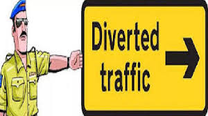 - नोटः- डायवर्जन के दौरान आकस्मिक वाहन जैसेः-पुलिस, एम्बुलेंस, मरीज वाहन, स्कूली वाहन फायर टेण्डर व आवश्यक सेवाओं वाले वाहन जैसेः दुग्ध वाहन, गैस वाहन, पेट्रोलियम वाहन व कच्चे माल वाहन इत्यादि वाहन अपने गन्तव्य मार्ग से जायेगें।