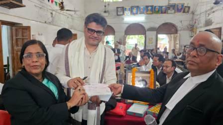 गाजीपुर! “सॉफ्टवेयर इंजीनियर शिवि प्रताप सिंह ने अपने पिता स्वर्गीय बृजेंद्र प्रताप सिंह के जन्मदिन 20 सितंबर 1952 की याद में, सिविल बार की लाइब्रेरी में वकीलों के लिए पुस्तकों की खरीद करने के लिए 25 हजार का चेक सिविल बार के अध्यक्ष रामजस यादव और मंत्री ज्योत्सना श्रीवास्तव को मुख्य हाल में सौंपा एवं मिष्ठान वितरण किया। इस दौरान बड़ी संख्या में अधिवक्ता बंधु उपस्थित रहे। चेक देने वाले इंजीनियर शिवि प्रताप सिंह, मूल रूप से पीलीकोटी आमघाट गाज़ीपुर के निवासी हैं और नईदिल्ली में रहते हैं, उन्होंने बताया कि मेरे पिता जी स्व. बृजेंद्र प्रताप सिंह, इलाहाबाद विश्वविद्यालय से लॉ ग्रेजुएट थे और फिर उनका IAS में चयन हो गया था, और वे “ज्वाइंट डायरेक्टर” पीपी & आर एयर कमांड, नई दिल्ली, में पोस्टेड थे, आज उनके जन्मदिन के अवसर पर मेरी माता जी की प्रेरणा से सिविल बार की लाइब्रेरी में कानून की किताबों के लिए 25 हजार रुपए की एक छोटी सी भेंट अर्पित कर रहा हूं। इस अवसर पर उनके परिजन विनय कुमार सिंह, एडवोकेट राजेंद्र विक्रम सिंह, सुरेश चंद्र श्रीवास्तव, लल्लन सिंह, सिविल बार की मंत्री सुश्री ज्योत्सना श्रीवास्तव, सिविल बार के अध्यक्ष रामजस यादव के साथ वरिष्ठ अधिवक्ताओं ने इस अवसर पर अपने उद्बोधन में इंजीनियर शिविप्रताप सिंह को साधुवाद दिया और इस कार्य को सराहनीय बताया, अधिवक्ताओं ने कहा कि शिवि प्रताप सिंह का यह कार्य पुत्र के अपने पिता के प्रति प्रेम और सम्मान को दर्शाता है। यह योगदान न केवल पिता की याद में श्रद्धांजलि है, बल्कि समाज के लिए भी एक अच्छा संदेश देता है।इस अवसर पर सिविल बार के अध्यक्ष रामजस यादव ने शिवप्रताप को अंगवस्त्रम पुष्प अर्पित कर स्वागत किया एवं उनके पिता स्वर्गीय बृजेंद्र प्रताप सिंह के चित्र पर माल्यार्पण कर उसे सिविल बार में टांगने की भी घोषणा की। कार्यक्रम का संचालन मंत्री एवं अधिवक्ता ज्योत्सना श्रीवास्तव ने किया।