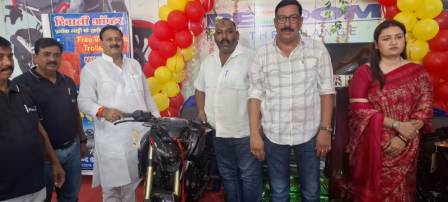 गाजीपुर। रौजा जमानिया मोड़ स्थित दि हिन्द बजाज शोरुम पर पल्सर एन-160 बाइक की लाचिंग व नवरात्री बजाज बाइक मेला का उदघाटन जंगीपुर विधायक डा० विरेन्द्र यादव दीप प्रजलित कर किया। फर्म के अदिश्ठाता सुहेल अनवर ने बताया कि सरकार द्वारा जीएसटी दर कम हाने पर बजाज बाइक की कीमत में भारी कमी आई है। पल्सर-125 निओन मात्र 93338/- पल्सर 125 कारबन मात्र 102354/- पल्सर 125 कारबन स्पिलिट मात्र 104341/- में उपलब्ध है इसके साथ वीआइपी अल्फा ट्राली फ्री इसके अलावा स्क्रेच करें और पायें तुरन्त बाइक एलइडी टीवी फ्रिज वाशिगं मशीन के अलाचा अन्य इनाम भी दिया ला रहा है। उक्त अवसर पर रास्ट्रीय सचिव महिला सभा श्रीमती शौर्या सिहं ने ग्राहकों को बजाज चेतक की चाभी व गिफट दिया। उक्त अवसर पर बजाज आटो फाइनेन्स-सीएसएम दीपक सिंह ने ग्राहकों को बताया कृफाइनेंन्स के द्वारा प्रासेसिग चार्ज फ्री एंव मात्र २ प्रतिशत डाउन पेमेंट के साथ बाइक घर ले जा सकते हैं। यह स्कीम केवल दि हिन्द बजाज पर ही उपलब्ध है। लॉच के दौरान बाइक व स्कूटर की ऑन स्पॉट डिलिवरी हुई। लॉचिग में प्रोपराइटर सुहेल अनवर (रिशु) शोरुम के जीएम शमसुल इसलाम (सोनू), सपा के जिला उपाध्यक्ष आमीर अली, राजकुमार, देवेस, नबील, अशोक व सब-डीलर एंव समस्त ग्राहक बंधु मौजूद रहे।