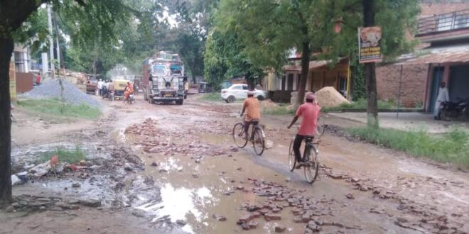 ग़ाज़ीपुर। नंदगंज से शादियाबाद जाने वाली सड़क की हालत खस्ताहाल है ।सड़क जगह जगह टूट कर छोटे बड़े गड्ढे का रूप ले लिया है। जिससे आवागमन करने वाले नागरिकों को मुसीबत का सामना करना पड़ रहा है। उक्त सड़क नंदगंज से शादियाबाद तक बनी है जिस पर अतरसुआ, चिलार, सिहोरी, इमलिया, पहलवानपुर, सिरगीथा, कटघरा आदि दर्जनों गांवों के लोग प्रतिदिन आवागमन करते रहते है।इसके साथ ही उक्त सड़क पर मेडवाइफ सेंटर, स्वास्थ्य केंद्र,हिंदी/इंग्लिश मीडियम स्कूल के अतिरिक्त महाविद्यालय संचालित होते है ।जहां काफी संख्या में छात्र/छात्रा पठन पाठन करने के लिए प्रतिदिन जाते है। उक्त सड़क पर गड्ढे होने की वजह से साईकिल सवार,मोटरसाइकिल सवार गिर कर चोटिल हो जाते है। ई रिक्शा के पलटने का डर बना रहता हैं। नागरिकों ने जिला प्रशासन से उक्त सड़क की मरम्मत कराने की मांग किया है।ताकि लोगों को आवागमन करने में आसानी हो सके।