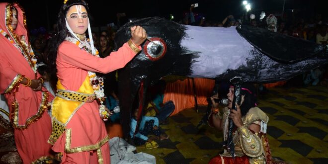 गाजीपुर। अति प्राचीन श्री रामलीला कमेटी की ओर से लीला के नौवे दिन 25 सितंबर दिन गुरुवार शाम 7:00 बजे मोहल्ला वेदपुरवा स्थित राजा शंभू नाथ के बाग अर्बन बैंक के पास श्री राम चबूतरा पर जयंत नेत्र भंग, माता अनसूया सीता संवाद, तथा ऋषि अत्रि श्री राम संवाद लीला का मंचन किया गया। इसके पूर्व कमेटी के मंत्री ओमप्रकाश तिवारी उप मंत्री लव कुमार त्रिवेदी प्रबंधक मनोज कुमार तिवारी उप प्रबंधक मयंक तिवारी तथा कोषाध्यक्ष रोहित अग्रवाल ने श्री राम लक्ष्मण सीता का पूजन आरती किया। इसके बाद बंदे बाणी विनायकौ श्री रामलीला मंडल के कलाकारों द्वारा लीला में दर्शाया गया है कि एक बार प्रभु श्री राम चित्रकूट में विश्राम कर रहे थे इसी दरमियान श्री राम फूल लोढ कर सुंदर गहने बना कर सीता जी का सिंगार कर रहे थे कि अचानक देवराज इंद्र का पुत्र जयंत कौवे का रूप धारण कर स्फटिक शिला पर बैठे श्री राम प्रभु सीता जी का श्रृंगार करते देख कर उसने श्रीराम के बल को आजमाने हेतु उसने श्री सीता जी के कोमल चरण में अपने चोंच से प्रहार कर देता है और भाग जाता है सीता जी के चरणों से खून बहने लगता है इतने में श्री राम ने सीता जी के चरणों से खून बहता देखकर श्री राम ने अपने धनुष पर सिंक का बाण बनाकर छोड़ दिया वह बाण जयंत का पीछा करने लगा और जयंत आगे आगे भागने लगा। वह भागते हुए ब्रह्मा जी विष्णु हर शिव जी के पास जाकर के सहायता मांगता है। सभी देवों ने उसके भगाने का कारण पूछा तो उसने बताया कि मैंने श्री राम के बल को जानने के लिए कौवे का रूप बनाकर उनके भाग्य सीता के चरणों में चोंच मार दिया उनके चरणों से खून बहते हुए देखकर श्री राम ने धनुष पर सीक का बाण अनुसंधान करके मेरे पीछे छोड़ दिया वह बार मेरा पीछा कर रहा है आप लोग मेरी रक्षा करें देवताओं ने जब इस प्रकार की बातें सुन तो सभी ने उसको सहायता तो दूर बैठने के लिए नहीं कहा। वह निराश होकर वापस आने लगा। रास्ते में देव ऋषि नारद से भेंट हो जाती है वह नारद जी से सारी बातें बता दे देता है। जयंत के सारे बात को सुनकर नारद जी ने कहा कि तुम पुनः श्री राम की शरण में जाकर क्षमा याचना करो वह बड़े दयालु हैं अवश्य तुम्हारे अवगुण को क्षमा कर देंगे। इतना सुनते ही जयंत श्री राम की शरण में जाकर क्षमा याचना मांगता है प्रभु श्री राम ने उसको दीन समझते हुए अपने बाण से उसके एक नेत्र को भंग कर देते हैं।इसके बाद प्रभु श्री राम महामुनि अत्रि ऋषि के आश्रम पहुंचते हैं ऋषि अत्रि अपने आश्रम में प्रभु के ध्यान में लीन थे। इसी दरमियान इसी प्रभु श्री राम लक्ष्मण सीता उनके आश्रम के अंदर प्रवेश करते हैं श्री राम ने उन्हें ध्यान से जगाया ऋषि अत्रि श्री राम के दर्शन को पकड़ अपना शीश झुकते हुए प्रार्थना करते हैं कि नमामि भक्त वत्सलम् कृपाल