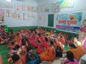 गाज़ीपुर। शारदीय नवरात्रि अष्टमी के अवसर पर मिशन शक्ति 5.0 के अंतर्गत नगर संसाधन केंद्र (URC), गाज़ीपुर में कन्या पूजन कार्यक्रम का आयोजन किया गया। इस अवसर पर कुल 51 बालिकाओं का पूजन एवं सम्मान किया गया। कार्यक्रम के दौरान बालिकाओं के चरण पूजन, तिलक, पुष्पार्चन एवं उन्हें फल-उपहार प्रदान किए गए। इस आयोजन का उद्देश्य “बेटी बचाओ, बेटी पढ़ाओ” तथा नारी सम्मान के संदेश को समाज में व्यापक स्तर पर पहुँचाना है। यही सरकार की मन्सा के साथ यह कार्यक्रम लगातार मिशन शक्ति के साथ किया जा रहा है। मिशन शक्ति 5.0 के अंतर्गत आयोजित इस कार्यक्रम में बालिकाओं की पूजा कर उन्हें समाज में देवी स्वरूप मानने की परंपरा को आगे बढ़ाने का संदेश दिया गया। साथ ही उपस्थित जनों को महिलाओं एवं बालिकाओं की सुरक्षा, शिक्षा तथा आत्मनिर्भरता के प्रति जागरूक किया गया। इस अवसर पर अधिकारियों, शिक्षकों एवं अभिभावकों ने कहा कि “नारी ही शक्ति का स्रोत है, और बालिकाओं के सम्मान एवं सशक्तिकरण के बिना समाज की प्रगति संभव नहीं है।” कार्यक्रम में जिला प्रोबेशन अधिकारी, सीडीपीओ सदर, विद्यालय की अध्यापिका उपस्थित थीं। उक्त के सदर चिकित्सालय में सेवा पखवाड़े के अंतर्गत महिला सुरक्षा व कानून पर जागरूकता कार्यक्रम करते हुए विभिन्न हेल्पलाइन तथा महिलाओं से सम्बंधित विभागीय योजनाओं की जानकारी दी गई। जिसमें महिला कल्याण विभाग से वन स्टॉप सेंटर, चाइल्ड हेल्पलाइन तथा चिकित्सालय के स्टाफ भी उपस्थित थे।