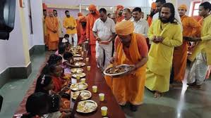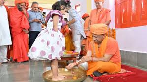 लखनऊ। मातृ शक्ति के प्रति अगाध श्रद्धा व सम्मान गोरक्षपीठ गोरखपुर की परंपरा है। मुख्यमंत्री बनने के बाद गोरक्षपीठाधीश्वर योगी आदित्यनाथ ने नारी सुरक्षा, स्वावलंबन और सम्मान की अनेक योजनाओं से इस परंपरा का व्यावहारिक धरातल पर विस्तार किया है। मातृ शक्ति के प्रति सम्मान की भावना को और मजबूत करते हुए सीएम योगी ने बुधवार को शारदीय नवरात्र की महानवमी तिथि पर गोरक्षपीठ की परंपरा के अनुरूप कन्या पूजन किया। गोरखनाथ मंदिर में आयोजित कन्या पूजन कार्यक्रम में गोरक्षपीठाधीश्वर ने नौ दुर्गा स्वरूपा कुंवारी कन्याओं के पांव पखारे, उनका विधि विधान से पूजन किया, चुनरी ओढाई, आरती उतारी, श्रद्धापूर्वक भोजन कराया, दक्षिणा और उपहार देकर उनका आशीर्वाद लिया। मुख्यमंत्री ने परंपरा का निर्वहन करते हुए बटुक पूजन भी किया। बुधवार को मुख्यमंत्री एवं गोरक्षपीठाधीश्वर योगी आदित्यनाथ ने मंदिर के अन्न क्षेत्र के प्रथम तल स्थित भोजन कक्ष में पीतल के परात में जल से नौ नन्ही बालिकाओं के बारी-बारी पांव धोये। दुर्गा सप्तशती के मंत्रोच्चार के बीच उनके माथे पर रोली, चंदन, दही, अक्षत आदि का तिलक लगाया। पुष्प और दुर्वा से उनका अभिषेक किया। माला पहनाकर, चुनरी ओढ़ाकर, उपहार एवं दक्षिणा प्रदान कर आशीर्वाद लिया। इस दौरान उन्होंने एक छह माह की बच्ची के भी पांव पखारे और पूजन कर आशीर्वाद लिया। मुख्यमंत्री ने हनुमानजी के वेश में आए एक बालक को भी तिलक लगाया और माला पहनाकर अंगवस्त्र ओढ़ाया। पूजन के बाद कन्याओं और बटुकों को मंदिर की रसोई में पकाया गया ताजा भोजन प्रसाद सीएम योगी ने अपने हाथों से परोसा। नौ कन्याओं के अतिरिक्त बड़ी संख्या में पहुंची बालिकाओं और बटुकों का भी मुख्यमंत्री ने पूजन कर आरती उतारी। सभी को श्रद्धापूर्वक भोजन कराकर उपहार व दक्षिणा दिया गया।