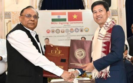 लखनऊ। अपनी अंतर्राष्ट्रीय पहचान को सुदृढ़ करने तथा अंतर्राष्ट्रीय पहुंच बढ़ाने के उद्देश्य से मदन मोहन मालवीय प्रौद्योगिकी विश्वविद्यालय, गोरखपुर ने कुलाधिपति एवं उत्तर प्रदेश की राज्यपाल आनंदीबेन पटेल के दूरदर्शी नेतृत्व में वियतनाम के दो प्रतिष्ठित विश्वविद्यालयों —हो ची मिन्ह सिटी यूनिवर्सिटी ऑफ टेक्नोलॉजी, तथा हो ची मिन्ह सिटी यूनिवर्सिटी ऑफ इकोनॉमिक्स एंड फाइनेंस के साथ आज एक समझौता ज्ञापन पर हस्ताक्षर किए। एम एम एम यू टी की तरफ से समझौते पर कुलपति प्रो जे पी सैनी ने हस्ताक्षर किए जबकि हो ची मिन्ह सिटी यूनिवर्सिटी ऑफ इकोनॉमिक्स एंड फाइनेंस की तरफ से डॉ न्यूएन थान्ह जियांग ने जबकि हो ची मिन्ह सिटी यूनिवर्सिटी ऑफ टेक्नोलॉजी की तरफ से डॉ न्यूएन थान्ह फुओंग ने समझौते पर हस्ताक्षर किए। समझौता ज्ञापन हस्ताक्षर कार्यक्रम कुलाधिपति की गरिमामय उपस्थिति में गांधी हॉल, राजभवन, लखनऊ में संपन्न हुआ। इस दौरान विश्वविद्यालय की तरफ से प्रो जय प्रकाश, कुलसचिव चंद्र प्रकाश प्रियदर्शी, तथा वित्त नियंत्रक विनय कुमार राय सहित उत्तर प्रदेश के नौ राज्य विश्वविद्यालयों के कुलपतिगण, आई आई टी कानपुर के प्रतिनिधि एवं वियतनाम से आए प्रतिनिधि मंडल के सदस्य उपस्थित रहे।समझौते के अंतर्गत दोनों पक्ष शैक्षणिक, शोध एवं विकास, तथा अन्य अकादमिक गतिविधियों के संचालन में सहयोग करेंगे। समझौते के अंतर्गत दोनों पक्ष विद्यार्थियों, शिक्षकों, एवं शोधकर्ताओं का आदान प्रदान कर सकेंगे, संयुक्त शोध कार्यक्रम संचालित कर सकेंगे, संयुक्त प्रशिक्षण कार्यक्रम आदि संचालित कर सकेंगे। साथ ही दोनों पक्ष संयुक्त रूप से अंतर्राष्ट्रीय संगोष्ठी, सम्मेलन आदि का आयोजन भी कर सकेंगे। इस समझौते के प्रमुख उद्देश्य निम्नवत होंगे: –