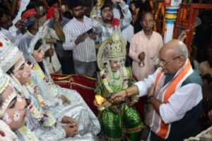 गाजीपुर। अति प्राचीन रामलीला कमेटी “हरिशंकरी” के तत्वाधान में 20 दिनों तक चलने वाले रामलीला मंचन का समापन हरिशंकरी स्थित प्राचीन राम चबूतरे पर समारोह पूर्वक सम्पन्न हुआ। बीती शाम 8:00 बजे श्री राम राज्याभिषेक का कार्यक्रम विधि विधान एवं वेद मंत्रोच्चार के साथ किया गया। इस कार्यक्रम की अध्यक्षता कमेटी के अध्यक्ष विनय कुमार सिंह ने किया। मुख्य अतिथि के रूप में राज्यसभा सांसद डॉ० संगीता बलवंत और विशिष्ट अतिथि वरिष्ठ भाजपा नेता कृष्णबिहारी राय की मौजूदगी रही। लंका पर विजय की प्राप्ति के बाद हरिशंकरी के प्राचीन चबूतरे पर श्रीराम राज्याभिषेक का भव्य आयोजन किया गया। राजा राम और माता जानकी सहित भरत, लक्ष्मण, शत्रुघ्न और हनुमानजी विराजमान हुए। भक्तों ने उनकी पूजा की और आशीर्वाद प्राप्त किया। इस अवसर पर गाजीपुर में नवरात्रि के अवसर पर सजे सुंदर दुर्गा पंडालों को और कार्यक्रम के सेहयोगियों को अति प्राचीन रामलीला कमेटी “हरिशंकरी” की ओर से प्रशस्तिपत्र दिया गया। यह प्रशस्ति पत्र मुख्य अतिथि और विशिष्ट अतिथि के हाथों दिया गया। राज्यसभा सांसद डॉ संगीता बलवंत ने उपस्थित जनता और कमेटी पदाधिकारियों को नमन करते हुए कहा, कि भगवान राम की कथा हमें सत्य, न्याय और धर्म के मार्ग पर चलने का संदेश देती है। रामायण के पात्रों से हमें जीवन जीने का सही तरीका सीखने को मिलता है। और जिस तरह से अति प्राचीन रामलीला कमेटी “हरिशंकरी” द्वारा चार सौ साल से परंपरागत ढंग से रामलीला मंचन किया जाता है ये पूरे शहर में एक उत्सव की तरह आयोजन होता है, लोग अपनी संस्कृति और परंपराओं से जुड़ते हैं जो बहुत ही सराहनीय है। वरिष्ठ भाजपा नेता कृष्णबिहारी राय ने कहा, भगवान राम की रामलीला हमें जीवन के मूल्यों और आदर्शों की याद दिलाती है। रामायण के पात्रों की तरह हमें भी अपने जीवन में सत्य और न्याय का पालन करना चाहिए।” इस अवसर पर दोनों अतिथियों ने रामलीला कमेटी की प्रशंसा की और भविष्य के लिए शुभकामनाएं दीं। कार्यक्रम मंच का संचालन अतिप्राचीन रामलीला कमेटी के मंत्री ओमप्रकाश तिवारी ने किया। इस अवसर पर हजारों की संख्या में लोग और बड़ी संख्या में महिलाएं और बच्चे शामिल रहे, लाइट & साउंड के माध्यम से देर रात तक लोग सांस्कृतिक कार्यक्रम का आनंद उठाते रहे। कार्यक्रम में मुख्य अतिथिराज्यसभा सदस्य डॉ0 संगीता बलवंत एवं विशिष्ट अतिथि कृष्ण बिहारी राय ने प्रभु श्री राम लक्ष्मण सीता भरत शत्रुघ्न तथा हनुमान जी को माला पहनाकर आरती की। साथ ही कमेटी के कार्यवाहक अध्यक्ष विनय कुमार सिंह, उपाध्यक्ष गोपाल जी पाण्डेय, मंत्री ओमप्रकाश तिवारी, संयुक्त मंत्री लक्ष्मी नारायण, उप मंत्री लव कुमार त्रिवेदी, मनोज कुमार तिवारी उपप्रबंधक