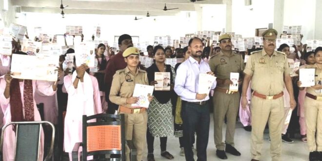 गाजीपुर। सत्यदेव डिग्री कालेज गाजीपुर के हाल में आज मिशन शक्ति के अंतर्गत प्रभारी थाना ध्यक्ष श्रीरामानंद सिंह जी के नेतृत्व में थाने से आई महिला कांस्टेबल शालू सरोज और साधना जी ने छात्राओं को मिशन शक्ति के अंतर्गत नारी सुरक्षा,नारी सम्मान,नारी स्वालंबन के विषय में चर्चा की।उन्होंने बताया कि बेटियां देश की सम्मान है उनके शिक्षा और स्वास्थ्य का पूरा ध्यान रखा जाना चाहिए।थाने से आए हेड कांस्टेबल शशि कुमार यादव और महिला आरक्षियों ने प्रत्येक छात्राओं को शसक्त नारी समृद्ध प्रदेश के पंपलेट भी दिए। कार्य क्रम के आरंभ में सत्यदेव ग्रुप ऑफ कॉलेजेज गाजीपुर के स्टेटिक डायरेक्टर अमित सिंह रघुवंशी जी ने सभी आगंतुकों का परिचय और उनके आने के उद्देश्य से छात्राओं को परिचित कराया।इस सभा में सत्यदेव डिग्री कालेज गाजीपुर के वाइस प्रिंसिपल नवनीत वर्मा और सभी विद्वान प्राध्यापक तथा प्राध्यापिका उपस्थित रही। सभा के अंत में सत्यदेव ग्रुप ऑफ कॉलेजेज गाजीपुर के कोऑर्डिनेटर डॉo राम चन्द्र दूबे जी ने सभी सहभागियों को धन्यवाद दिया।