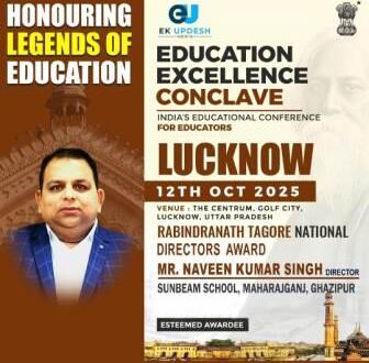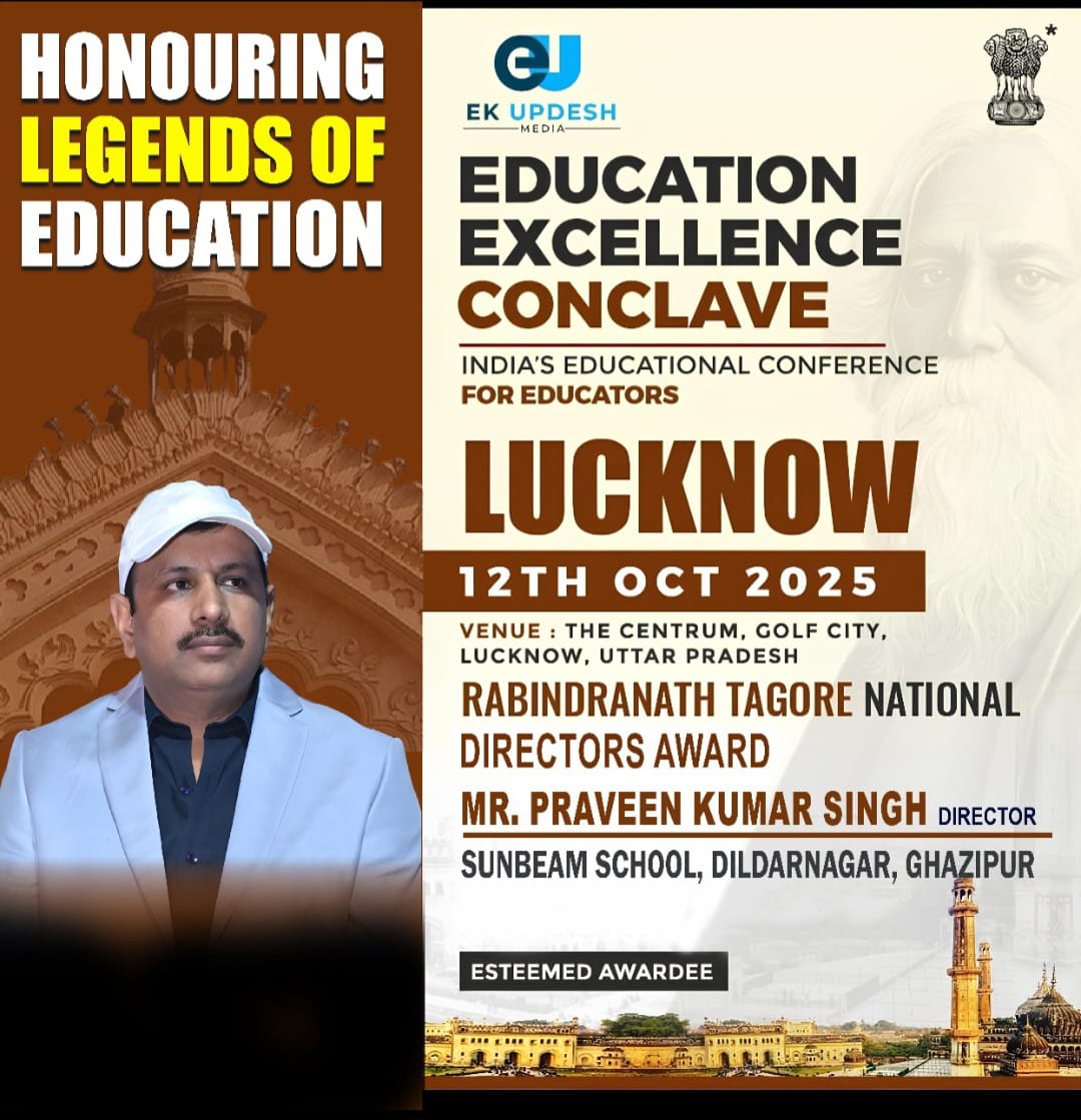 गाजीपुर। सनबीम समूह ने शिक्षा के क्षेत्र में अपनी उत्कृष्टता का परचम एक बार फिर लहराया है। सनबीम स्कूल महराजगंज के निदेशक नवीन कुमार सिंह और सनबीम स्कूल दिलदारनगर के निदेशक प्रवीण कुमार सिंह को उनके उत्कृष्ट नेतृत्व, दूरदर्शी प्रबंधन और शिक्षा के क्षेत्र में उल्लेखनीय योगदान के लिए “रविन्द्र नाथ टैगोर नेशनल डायरेक्टर अवार्ड” से सम्मानित किया गया। इसी क्रम में सनबीम स्कूल महराजगंज की प्रधानाचार्या अर्चना कुमारी को उनके उत्कृष्ट शैक्षणिक निर्देशन एवं विद्यालय प्रबंधन में नवाचार के लिए सम्मानित किया गया। यह अवार्ड कार्यक्रम एक्स्ट्रामार्क एजुकेशन की तरफ से लखनऊ के सेंटरम गोल्फ सिटी में दिनांक 12 अक्टूबर 2025, रविवार को आयोजित किया गया था। यह सम्मान शिक्षा के क्षेत्र में निरंतर उत्कृष्ट प्रदर्शन, विद्यार्थियों के सर्वांगीण विकास और गुणवत्तापूर्ण शिक्षण के प्रति उनकी प्रतिबद्धता को दर्शाता है। सनबीम परिवार के सभी सदस्यों ने इस उपलब्धि पर हार्दिक बधाई एवं गर्व व्यक्त किया। निदेशक नवीन कुमार सिंह ने कहा कि यह सम्मान संपूर्ण सनबीम परिवार की मेहनत और समर्पण का परिणाम है। “यह सम्मान हमारे विद्यालय परिवार की कड़ी मेहनत, समर्पण और शिक्षक एवं विद्यार्थियों के निरंतर प्रयास का परिणाम है। यह हमें और भी उच्च मानकों को प्राप्त करने और शिक्षा के क्षेत्र में नई ऊँचाइयाँ छूने की प्रेरणा देता है।”निदेशक प्रवीण कुमार सिंह ने इस अवसर पर कहा —“यह सम्मान हमारे सभी शिक्षक, विद्यार्थी और अभिभावकों की मेहनत और योगदान का परिणाम है। यह हमें शिक्षा के क्षेत्र में और उच्च मानकों को स्थापित करने की प्रेरणा देता है।”