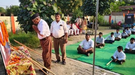 गाजीपुर। राष्ट्रीय स्वयंसेवक संघ के 100 वर्ष पूरा होने के उपलक्ष्य मे सैदपुर जिले के देवकली खंड सिरगिथा मंडल में राष्ट्रीय स्वयंसेवको द्वारा पद संचालन और शस्त्र पूजन का कार्यक्रम आयोजित किया गया ।जिसमे सॆकङो स्वयंसेवको ने भाग लिया। इस अवसर पर संबोधित करते हुए राष्ट्रीय स्वयंसेवक संघ विभाग के सामाजिक सदभाव प्रमुख एवं शासकीय अधिवक्ता अभय नारायण तिवारी ने कहा संघ पूरे देश मे शताब्दी वर्ष धूमधाम धाम के साथ मना रहा है। यह देश के लिए गौरव की बात है ।डॉ बलराम हेडगेवार ने जिस उद्देश्य से 1925 मे विजयादशमी के दिन 5 स्वयं सेवकों को लेकर संघ कि स्थापना किया आज पूरे विश्व का सबसे बड़ा संगठन बन गया है जो विभिन्न क्षेत्रों मे राष्ट्रीय हित मे कार्य कर रहा हॆ। जिला कुटुम्ब प्रबोधन प्रमुख सोमारू चॊहान नॆ हेडगेवार जी द्वारा संघ के गठन के उद्देश्य एवं १०० वर्ष के कार्यकाल पर विस्तृत प्रकाश डालते हुए इस वर्ष संघ द्वारा चलाये जा रहे कार्यक्रमो की जानकारी दी। पद संचलन कार्यक्रम के दौरान सैंकड़ों स्वयंसेवको ने पहलवानपुर चट्टी होते हुए सिरगिथा बाजार का भ्रमण किया। भारत माता की जय घोष के साथ स्वयंसेवको पर पुष्प वर्षा की गई। कार्यक्रम में मुख्य रुप से जिला कार्यवाह सतेन्द्र जी, फॆलू सिंह यादव विभाग सदस्य, खंड चालक गुरुचरण जी ,विभाग सदस्य फॆलू सिंह,खण्ड कार्यवाह प्रवीण जी , ऋषिकेश जी , तेरसू यादव , महेंद्र जी, कृष्णकांत जी, गुरुप्रसाद जी आदि स्वयंसेवक प्रमुख रूप से मॊजूद थे। कार्यक्रम का संचालन खंड शिक्षण प्रमुख राजीव जी ने किया।