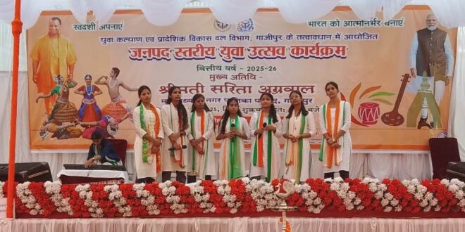 गाजीपुर। युवा कल्याण एवं प्रादेशिक विकास दल विभाग गाजीपुर के सौजन्य से एक दिवसीय युवा उत्सव कार्यक्रम जिसमें कहानी लेखन, कविता लेखन पेंटिंग, लोकगीत (समूह) लोकनृत्य (समूह), डिक्लेमेशन एवं विज्ञान मेला प्रदर्शनी का आयोजन किया गया। युवा उत्सव 2025 कार्यक्रम का उद्घाटन सरिता अग्रवाल, अध्यक्ष नगरपालिका परिषद गाजीपुर द्वारा दीप प्रज्वलित कर किया गया। मुख्य अतिथि अग्रवाल जी को आयोजक जिला युवा कल्याण अधिकारी दिलीप कुमार द्वारा पुष्पगुच्छ एवं स्मृति चिन्ह देकर स्वागत एवं अभिनंदन किया गया। विज्ञान प्रदर्शनी का अवलोकन कर मुख्य अतिथि द्वारा युवाओं के प्रति अत्यत गर्व महसूस किया गया एवं उनके उज्ज्वल भविष्य की कामना की गई। मुख्य अतिथि ने अपने संबोधन में कहा कि आज के भारत देश का युवा भविष्य में विश्व में अपना परचम लहराने का कार्य बखूबी करेगा और मोदी जी के मिशन को पूरा करेगा कार्यक्रम में उपनिदेशक, माय भारत, श्री कपिल देव जौ, क्रीडा अधिकारी, अरविंद यादव, जितेंद्र जी (पेंटिंग), प्रवक्ता डी ए वी , इंटर कॉलेज, गाज़ीपुर, संतोष तिवारी जी, प्रवक्ता डी ए वी कॉलेज, शैलेश ओझा प्रवक्ता डी ए वी इण्टर कॉलेज, मीनू सिंह (कहानी लेखन) प्रधानाचार्य रा० हा० स्कूल सहेडी सिस्टर मेरी कुट्टी (कविता लेखन) प्रधानाचार्य लूथर्स कान्वेंट गल्स इण्टर कालेज गार्गी उपाध्याय, शिखा तिवारी, सुभाष चंद्र प्रसाद माय भारत, डा० विवेक जी पॉलीटेक्निक कॉलेज, सौरभ सिंह सी बी सिंह, राकेश शर्मा, अनूप राय एवं समस्त क्षेत्रीय युवा कल्याण अधिकारी। परिणाम निम्नवत रहा- लोकगीत समूह में बाराचवर की टीम ने प्रथम स्थान प्राप्त किया। कविता लेखन में दिव्यांश श्रीवास्तव देवकठिया प्रथम, रानी कुमारी जमानिया द्वितीय, स्मिता तिवारी हुसैनपुर तृतीय रही। कहानी लेखन में संजीत सिंह रेवतीपुर प्रथम, प्रीति यादव जमानिया दद्वितीय, जयप्रकाश केशरी जमानिया तृतीय, चित्रकला में वैष्णवी मौर्य गाजीपुर प्रथम, आषण में दीपशिखा सिंह रेवतीपुर प्रथम रही। विज्ञान प्रदर्शनी में कुल 11 टीमों ने लोकगीत में कुल 7 टीमों ने वही स्किल डेवलपमेंट यथा चित्रकला आषण, कहानी लेखन, कविता लेखन में 250 से अधिक प्रतिभागियों ने प्रतिभाग किया विजेता प्रतिभागी मंडल स्तर की प्रतियोगिता के लिए मंडल वाराणसी में प्रतिभाग करेंगे। विजेता प्रतिभागियों को पुस्कार एवं प्रमाण पत्र का वितरण माननीय सांसद खेल स्पर्धा के जिला समन्वयक भाजपा कार्यालय प्रभारी श्री राजन प्रजापति के कर कमलों द्वारा किया गया। अंत में कार्यक्रम के संयोजक दिलीप कुमार जिला युवा कल्याण अधिकारी द्वारा अतिथियों एवं प्रतिभागियों का आभार व्यक्त किया गया।