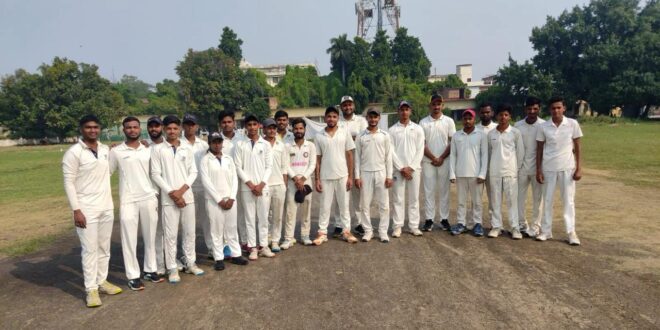 गाजीपुर डिस्ट्रिक्ट क्रिकेट एसोसिएशन (सबद्ध – उत्तर प्रदेश क्रिकेट एसोसिएशन) के तत्वाधान में गाजीपुर के स्थानीय स्वामी सहजानंद स्नातकोत्तर महाविद्यालय गाजीपुर के जीडीसीए मैदान पर हो रही गाजीपुर डिस्ट्रिक्ट क्रिकेट लीग 2025 श्रृंखला का आज का चौथा मैच सी.पी.सी.-ब्लू और महावीर क्रिकेट अकादमी के बीच खेला गया | मैच के पूर्व आज के मैच के दोनों अंपायर रोहित एवं सौरभ तिवारी ने रंजन सिंह के साथ पिच का निरिक्षण किया |आज के मैच में सी.पी.सी.-ब्लू ने टॉस जीतकर पहले बल्लेबाजी करने का निर्णय लिया | पहले बल्लेबाजी करते हुए सी.पी.सी.-ब्लू की टीम ने पवन राय के धुआंधार बल्लेबाजी (27 गेंद पर 80 रन) तथा मनीष यादव के 40 गेंद पर 63 रन की बदौलत 32वें ओवर की चौथी गेंद पर 270 रनों के स्कोर पर आल आउट हो गयी | महावीर क्रिकेट अकादमी के तरफ से दीपक प्रजापति ने सर्वाधिक 4 विकेट एवं अमन ने 3 व सौरित गुप्ता ने 2 तथा विवेक गुप्ता ने 1 विकेट लिया | 271 रनों के लक्ष्य का पीछा करते हुए महावीर क्रिकेट अकादमी की टीम मात्र 255 रन ही बना पाई | महावीर क्रिकेट अकादमी के तरफ से पंकज विश्वकर्मा ने सर्वाधिक 52 ( 33 गेंद पर) एवं दीपक प्रजापति ने 51 रन बनाया | सी.पी.सी.-ब्लू के तरफ से विनीत सिंह राजपूत ने सर्वाधिक 3 तथा पवन राय ने 2 एवं अजय यादव व सचिन ने 1-1 विकेट लिया | आज के मैच में रोहित एवं सौरभ तिवारी ने अंपायर तथा भावेश, शौर्य और प्रीतम ने स्कोरर की भूमिका निभाई | इस अवसर पर गाजीपुर डिस्ट्रिक्ट क्रिकेट एसोसिएशन के अध्यक्ष शाश्वत सिंह ने बताया कि छठ पर्व के कारण श्रृंखला का अगला मैच 29 अक्टूबर को सी.पी.सी.-येलो और ए.पी.आर.सी.-ग्रीन के बीच खेला जायेगा |