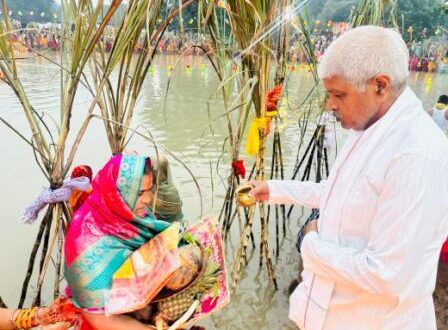 गाजीपुर। भारतीय जनता पार्टी के जिलाध्यक्ष ओमप्रकाश राय ने रेवतीपुर पोखरा पर बने घाट पर जाकर महापावन व्रत छठ के पहले दिन अस्तगामी भगवान सूर्य को व्रती महिलाओ को अर्घ्य दिया। जिलाध्यक्ष ओमप्रकाश राय ने बताया कि पावन छठ व्रत महिलाएं अपने परिवार के सुख और समृद्धि के लिए कठिन व्रत करती है। यह सनातन धर्म का सबसे कठिन व्रत है। उन्होने भगवान भाष्कर से देश प्रदेश व जनपद के सुख समृद्धि के लिए पूजा अर्चना की।