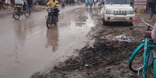 ग़ाज़ीपुर।बारिश ने नंदगंज बाजार के लोगों की मुश्किलें बढ़ा दी हैं। नंदगंज बाजार का मुख्य मार्ग कीचड़ और बरसाती पानी से लबालब हो गया है, जिससे आमजन का आवागमन बाधित हो गया है। सुबह-शाम स्कूल आने-जाने वाले बच्चों और दफ्तर जाने वाले लोगों को फिसलन भरी सड़कों से होकर गुजरना पड़ रहा है। कई बार लोगों को गिरकर चोटें भी लग चुकी हैं। स्थानीय निवासियों का कहना है कि बाजार में जल निकासी की कोई उचित व्यवस्था नहीं है। हर वर्ष बारिश के मौसम में यही समस्या दोहराई जाती है, लेकिन अब तक कोई ठोस कदम नहीं उठाया गया। दुकानदारों और घरों के सामने कुछ लोगों ने अपने स्थान को ऊँचा करने के लिए मिट्टी डाल दी है, जिससे पानी नीचे सड़क पर जमा हो जाता है। दुकानदार दीपक बताते हैं, “बारिश शुरू होते ही बाजार में सड़क पर पानी लग जाता है। ग्राहक आने से कतराते हैं, जिससे कारोबार पर असर पड़ रहा है।” वहीं स्कूल की छात्रा साक्षी ने बताया कि उन्हें रोज़ाना कीचड़ से होकर स्कूल पहुँचना पड़ता है, जिससे जूते और कपड़े गंदे हो जाते हैं। स्थानीय लोगों ने प्रशासन से मांग किया है कि जल निकासी की व्यवस्था की जाए। फिलहाल, नंदगंज बाजार के लोग उम्मीद कर रहे हैं कि प्रशासन उनकी इस सालों पुरानी समस्या का स्थायी समाधान जल्द निकाल सकेगा।