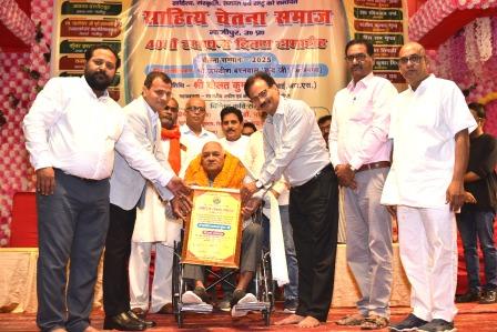 गाजीपुर। ‘साहित्य चेतना समाज’ के 40वें स्थापना-दिवस के अवसर पर नगर के वंशी बाजर-स्थित रघुवंशी पैलेस के सभागार में एक विशिष्ट कवि-सम्मेलन का आयोजन किया गया।इस अवसर पर आजमगढ़ के वरिष्ठ साहित्यकार जगदीश बरनवाल ‘कुंद’ को ‘चेतना सम्मान’ से सम्मानित किया गया। इस कार्यक्रम की अध्यक्षता वरिष्ठ गीतकार डाॅ.ईश्वरचन्द्र त्रिपाठी ने की और मुख्य अतिथि शासकीय अफीम एवं क्षारोद कारखाना, गाजीपुर के महाप्रबन्धक, आई.आर.एस. दौलत कुमार रहे। कार्यक्रम का शुभारम्भ माॅं बागेश्वरी,विद्या की अधिष्ठात्री देवी सरस्वती के पूजन-अर्चन एवं दीप-प्रज्वलन से हुआ। चंदौली से पधारीं कवयित्री रीना तिवारी की सरस्वती वन्दना के उपरान्त संस्था के संस्थापक अमरनाथ तिवारी ‘अमर’ ने आगंतुकों का वाचिक स्वागत किया, साथ ही संस्था के 40 वर्षों की सुदीर्घ-सार्थक यात्रा पर प्रकाश डाला। तत्क्रम में मंचस्थ साहित्यिक विभूतियों एवं कविगण का माल्य, अंगवस्त्रम् एवं सम्मान-पत्र के द्वारा स्वागत किया गया। ‘चेतना सम्मान’ से सम्मान से सम्मानित, बीसाधिक महत्त्वपूर्ण कृतियों के रचनाकार जगदीश बरनवाल ‘कुंद’ ने अपने वक्तव्य में साहित्य, संस्कृति, समाज एवं राष्ट्र की, समर्पण भाव से निस्पृह सेवा करने वाली इस संस्था की भूरिश: प्रशंसा की और समाज एवं राष्ट्र को सही दिशा देने में साहित्य की महती भूमिका को रेखांकित किया। कार्यक्रम के मुख्य अतिथि दौलत कुमार ने कहा कि “साहित्य चेतना समाज के इस महनीय कार्य को आने वाला समय स्वर्णाक्षरों में रेखांकित करेगा। ऐसी संस्थाऍं समय-समय पर अपने महत्तर कार्य द्वारा सामाजिक चेतना में स्तरोन्नयन के साथ ही व्यक्ति-व्यक्ति में पुष्कल राष्ट्रहित-चेतना जागृत करतीं हैं।” अगले क्रम में सुदूरवर्ती जनपदों से पधारे कवि-कवयित्रियों ने देर रात तक चले इस विशिष्ट कवि-सम्मेलन में श्रोताओं को काव्य-रस से आप्लावित किया। चंदौली से पधारे कवि कृष्णा मिश्रा के मुक्तकों को श्रोताओं ने खूब प्रशंसित किया “अपनो से कभी जीत करके हारना भी है/फिर हार करके जीतने का नाम ज़िन्दगी”। चंदौली की गीत की कवयित्री रीना तिवारी ने “यूं तो दुनिया में अपने बहुत हैं मगर/माॅं से बढ़कर जमाने में कोई नहीं” सुनाकर अतिशय प्रशंसा अर्जित की। इसी क्रम है देवरिया के हास्य-व्यंग्य के युवा कवि रुद्रनाथ त्रिपाठी ‘पुंज’ ने अपनी कविता “जय हो पत्नी,जय हो पत्नी/मेरे बच्चों की माता” सुनाकर ख़ूब वाहवाही बटोरी। वाराणसी की कवयित्री विदुषी साहाना ने अपना गीत “उन्मुक्त नयन के दर्पण में मैंने तेरी छवि उतार ली” प्रस्तुत कर श्रोताओं को रससिक्त कर दिया। बेगूसराय के श्रेष्ठ ग़ज़ल-गो मासूम राशदी ने अपनी ग़ज़ल “ये हमसे पूछिए क्या-क्या फ़रोख़्त करना प