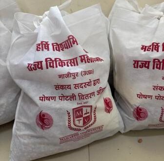 गाजीपुर। महर्षि विश्वामित्र स्वशासीय मेडिकल कॉलेज के प्राचार्य डॉ. आनंद मिश्र जी के नेतृत्व में प्रत्येक माह टीबी मरीजों को न्यूट्रीशन की स्वास्थ्य पोटली वितरित की जाती है। इसी क्रम में इस माह भी डॉ. स्वतंत्र सिंह, अमित चन्द्रमौली जी, डॉ. भानु जी एवं डॉ. विपुल कांत की गरिमामयी उपस्थिति में टीबी मरीजों को पौष्टिक आहार किट प्रदान की गई, जिसे प्राप्त कर सभी मरीजों के चेहरों पर विशेष प्रसन्नता देखने को मिली।