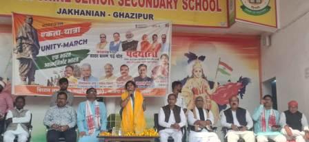 गाजीपुर। भारत के प्रथम गृहमंत्री, भारत रत्न सरदार वल्लभ भाई पटेल के 150वीं जन्म जयंती पर आयोजित पदयात्रा जिलाध्यक्ष ओमप्रकाश राय के नेतृत्व मे तेतरा देवी महाविद्यालय से जखनियां तहसील रोड होते हुए उत्तर केविन, जखनिया बाजार, सब्जी मंडी रोड, दक्षिण केबिन होते हुए सनशाइन स्कूल जखनिया में सभा के रूप में परिवर्तित हो गयी। पदयात्रा में जखनिया विधानसभा के भाजपा कार्यकर्ता , क्षेत्रीय जनता एवं विद्यालय के छात्र-छात्राओं ने तिरंगे के साथ पद यात्रा में भाग लिया। पद यात्रियों द्वारा रास्ते भर भारत माता की जय, सरदार पटेल अमर रहे, वंदे मातरम के नारे लगाते रहे। इस अवसर पर कार्यक्रम की मुख्य अतिथि राज्यसभा सांसद संगीता बलवंत का व्यापारियों द्वारा भाजपा व्यापार प्रकोष्ठ जिला अध्यक्ष प्रमोद वर्मा के नेतृत्व में अंगवस्त्र व स्मृति चिन्ह देकर स्वागत अभिनंदन किया गया। कार्यक्रम की मुख्य अतिथि डा संगीता बलवंत ने कहा सरदार पटेल का जन्म सामान्य किसान परिवार में हुआ था। वो निडर, निर्भीक, साहसी और दृढ़ इरादों वाले व्यक्ति थे उनके साहसिक निर्णय के कारण ही उनको लौह पुरुष कहा जाता है। उन्होंने कहा कि आजादी के आंदोलन में सरदार वल्लभभाई पटेल ने बढ़ चढ़ कर नेतृत्व प्रदान किया था और जब देश आजाद होता है तो ब्रिटिश सरकार की जो साजिश थी कि भारत को अनेक टुकड़ों में विभाजित कर दिया जाए, वो केवल दो टुकड़ों में विभाजन से संतुष्ट नहीं थे। भारत को खंड खंड की करने की साजिश के तहत उस समय की ब्रिटिश सरकार ने प्रयास किया था, उन्होंने देशी रियासतों को इस बात की स्वतंत्रता दी थी की वो भारत में विलय हो सकती है या वह चाहे तो पाकिस्तान में जा सकती है और वह चाहे तो अपना स्वतंत्र अस्तित्व बनाए रख सकते हैं। याद करिए हैदराबाद और जूनागढ़ के निजाम और नवाब के द्वारा भारत के अंदर शामिल होने में आनाकानी की जा रही थी तो उस समय लौह पुरुष सरदार वल्लभभाई पटेल ने पहले उन्हें समझाने का प्रयास किया। वो सब अखंड भारत के अंदर ही इस्लामिक स्टेट के रूप में अपने आप को स्थापित करना चाहते थे, लौह पुरुष ने कहा कि भारत के अखंडता के साथ कोई खिलवाड़ बर्दाश्त नहीं, स्वीकार्य नहीं। वल्लभभाई पटेल के प्रभाव से हैदराबाद का निजाम और जूनागढ़ का नवाब भाग गये, उन्हें लौह पुरुष के फैसले के आगे भारत छोड़कर भागने के लिए मजबूर होना पड़ा। ये राष्ट्रभक्ति का भाव होता है, जो देश को अखंडता के सूत्र में बांध करके अपनी एकता को बनाए रखना है। उन्होंने कहा कि 563 रियासतों को भारत का राज्य का हिस्सा बना करके अखंड भारत के निर्माण में अपना योगदान दिया। और केवल एक रियासत जम्मू कश्मीर पंडित नेहरू के पास थी उन्होंने उसे विवादित करने का प्रयास किया। हम सब आभारी है प्रधानमंत्र