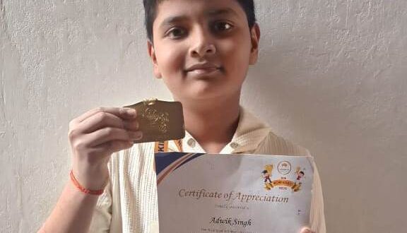 गाजीपुर। दी प्रेसिडीयम इंटरनेशनल स्कूल गाजीपुर के कक्षा 4 के छात्र आद्विक सिंह ने 15 वां नेशनल बीओबी वंडरकिड 2025 नेशनल लेवल इंटर स्कूल ऑफ कंपटीशन में गोल्ड मेडल प्राप्त कर जिले का नाम रोशन किया है। आद्विक सिंह के सफलता पर पूर्वांचल न्यूज परिवार, एडीजीसी एडवोकेट अखिलेश सिंह, भानू प्रताप सिंह, रिसर्च स्कालर सूरज आदि गणमान्य लोगो ने उनके उज्जवल भविष्य की कामना करते हुए बधाई दी है।