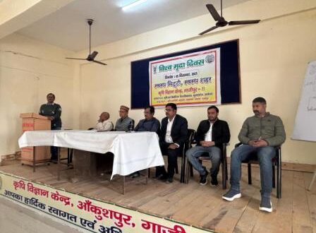 गाजीपुर। आचार्य नरेंद्र देव कृषि एवं प्रौद्योगिक विश्वविद्यालय कुमारगंज, अयोध्या के अंतर्गत संचालित कृषि विज्ञान केंद्र अंIकुशपुर, गाजीपुर के द्वारा विश्व मृदा दिवस पर किसानों को मृदा स्वास्थ के प्रति जागरुक किया गया I कार्यक्रम मे कुल 87 कृषक एवं कृषक महिलाओं ने प्रतिभाग किया , कृषि विज्ञानं केंद्र के वैज्ञानिक डॉ. दीपक प्रजापति ( मृदा ) , डॉ. पंकज कुमार ( कृषि अभियांत्रिक ), डॉ. नरेंद्र प्रताप ( अनुवांशिकी एवं पादप प्रजनन) डॉ0 शशांक सिंह (उद्यान ),डॉ. ए0 के0 सिंह ( पशुपालन ), डॉ. जे. पी. सिंह (अध्यक्ष, के. वी. के) अपने विचारो से मिट्टी, फसल और पर्यावरण को स्वस्थ रखने के साथ -साथ किसानो से आग्रह भी किया कि जैविक और प्राकृतिक खेती अपनाए I डॉ. दीपक प्रजापति मृदा दिवस के इतिहास को बताते हुए पोषक तत्व, जीवांश का मृदा उर्वरता में महत्व और कार्बन चक्र के बारे में विस्तार से बताया I डॉ. पंकज कुमार ने फसल अवशेष प्रबंधन, डॉ ए0 के0 सिंह मृदा स्वास्थ में पशुओं के योगदान, डॉ. नरेंद्र प्रताप ने किसानों को प्राकृतिक खेती का मानव स्वास्थ्य में महत्व और डॉ जे. पी. सिंह ने हरी एवं भूरी खाद के साथ साथ बीज शोधन करना क्यों आवश्यक है, दलहनी फसलों में उकठा रोग के निदान के बारे में विस्टार से चर्चा किया I सुरेंद्र पाल ,तेजबहादुर सिंह , सुभाष चंद्र, श्री ब्रिजकेतु सिंह, रम्भा देवी एवं इंद्रा देवी आदि किसानो ने कार्यक्रम मे प्रतिभाग कियाI
