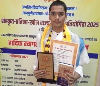 गाजीपुर। उत्तर प्रदेश संस्कृत संस्थान द्वारा आयोजित संस्कृत प्रतिभा खोज प्रतियोगिता के अंतर्गत अमरकोश कण्ठस्थ पाठ प्रतियोगिता में करंडा के ब्राह्मणपुरा गांव निवासी आशुतोष द्विवेदी ने प्रथम स्थान प्राप्त कर जिले का नाम रौशन किया है। प्रतियोगिता में प्रदेश के सभी जिले के प्रतिभागियों ने भाग लिया था। आशुतोष द्विवेदी महर्षि भरद्वाज वेद विद्यालय में वेद भूषण पंचम वर्ष में दसवीं के छात्र है। अमरकोश कंठस्थ पाठ प्रतियोगिता में प्रथम स्थान प्राप्त करने में अपने गुरु श्री हरि ओम शुक्ला से मिली प्रेरणा को बताया। उन्होंने ने बताया कि वेद संस्कृत पढ़ने के लिए उनके मामा नीरज पांडेय ने वेद विद्यालय में प्रवेश दिलवाया था। पिता ब्रह्मानंद द्विवेदी व माता रीता देवी के इकलौते पुत्र आशुतोष बचपन से ही मेधावी है। इससे पूर्व मुख्यमंत्री योगी आदित्यनाथ ने 2018 में इन्हें वेद पाठ सुनाने पर लखनऊ में सम्मानित किया था।