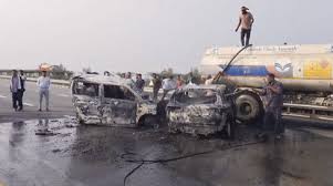 लखनऊ। बाराबंकी के हैदरगढ़ में हुए भीषण सड़क हादसे में दो कारों की टक्कर के बाद आग लग गई जिसमें जिंदा जलकर पांच लोगों की मौत हो गई। हादसा पूर्वांचल एक्सप्रेस वे के किमी 51. 600 पर सुबेहा के गांव डीह गांव के पास हुआ। प्रत्यक्षदर्शियों के अनुसार एक्सप्रेस वे पर खड़ी एक वैगन आर में पीछे से एक ब्रेजा कार टकरा गई जिससे वैगन आर में लग गई और दोनों वाहन जल गए। हादसे में एक महिला व किशोरी सहित पांच लोगों की मौके पर ही मौत हो गई जबकि चार लोग बुरी तरह घायल हो गए। बताया जा रहा है कि दोनों वाहनों में नौ लोग सवार थे। सभी को हैदरगढ़ सीएचसी में भर्ती करवाया गया है। घटनास्थल पर पुलिसकर्मी और स्थानीय लोग मौजूद हैं। मामले की जांच की जा रही है। टकराने के बाद दोनों गाड़ियां जल गईं। एसपी अर्पित विजयवर्गीय ने बताया कि एक कार गाजियाबाद की जबकि दूसरी दिल्ली की है। माना जा रहा है कि कार में पति-पत्नी और दो बच्चे थे। यह लोग पानी पीने के लिए कार रोक कर निकले थे तभी दूसरी कार आ टकराई। एसपी ने बताया कि पांच लोगों की मौके पर ही मौत हो गई जबकि चार गंभीर रूप से घायल हैं। उन्हें अस्पताल में भर्ती करवाया गया है। वैगनआर कार में मृतक गुलिशता (49) पत्नी जावेद अशरफ वाराणसी मायका घोसी, समरीन (22) पुत्री जावेद अशरफ, इलमा खान (12) इश्मा खान (6) जियान (10) और घायल जीशान पुत्र गफ्फार खानपुर घोसी मऊ सवार थे।
