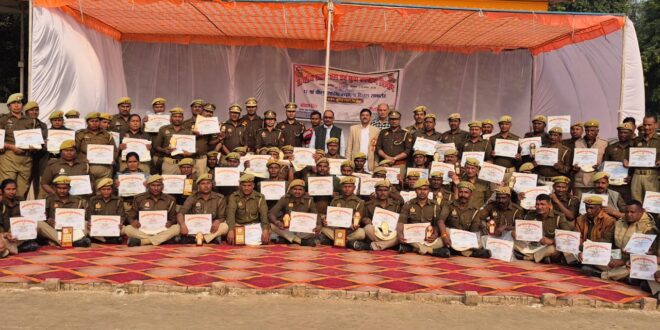 गाजीपुर। युवा कल्याण एवं प्रांतीय रक्षक दल विभाग गाजीपुर के तत्वावधान में 77 वां पी आर डी स्थापना दिवस समारोह सफलता पूर्वक पुलिस लाइन परेड ग्राउंड में मनाया गया। जनपद के कुल 88 पी आर डी जवानों जिसमें 22 महिला पी आर डी सम्मिलित रहीं । परेड की सलामी श्रीमती सरिता अग्रवाल अध्यक्ष नगर पालिका परिषद गाजीपुर एवं दीनदयाल वर्मा परियोजना निदेशक गाजीपुर द्वारा स्वीकार किया गया! सलामी से पूर्व अतिथि द्वय द्वारा परेड का निरीक्षण किया गया। दिनांक 5 दिसम्बर 2025 से अभ्यास परेड क़ा संचालन सर्व अखिलेश यादव, चंद्रकांत यादव, किशन चंद, रविशंकर प्रसाद, वकार खान, आंचल सिंह एवं सिंधुजा यादव क्षेत्रीय युवा कल्याण अधिकारी द्वारा किया गया। कुल 4 टोली अभ्यास हेतु बनाई गयी थी, परेड सकुशल संपन्न होने के उपरांत टोली संख्या 1 प्रथम, टोली संख्या 2 द्वितीय, टोली संख्या 4 तृतीय स्थान प्राप्त किया द्य परेड संपन्न होने के उपरांत रस्साकशी की प्रतियोगिता भी करायी गयी जिसमें अनिल कुमार भारती की टीम विजेता एवं रामदयाल राम की टीम उप विजेता रही। परेड में सम्मिलित सभी 88 पी आर डी जवान को अंग वस्त्र एवं प्रमाण पत्र देकर सम्मानित किया गया. परेड में उत्कृष्ट प्रदर्शन एवं अनुशासन हेतु पी आर डी जवान अनिल कुमार भारती, रामदयाल राम, अक्षय कुमार, बर्फ भारती एवं रेनू विश्वकर्मा को ट्रॉफी देकर सम्मानित किया गया। मुख्य अतिथि द्वारा अपने संबोधन में पी आर डी जवानों क उत्कृष्ट प्रदर्शन एवं अनुशासन की सराहना करते हुए उज्जवल भविष्य की कामना की गयी। कार्यक्रम के आयोजक जिला युवा कल्याण अधिकारी द्वारा दोनों अतिथियों का बुके एवं स्मृति चिह्न देकर सम्मानित किया गया। स्थापना दिवस परेड में पूर्व व्यायाम प्रशिक्षक चंद्रभान सिंह, प्रति सार निरीक्षक, अमरनाथ कुशवाहा, पुलिस विभाग के 2 परेड प्रशिक्षक, राम अवध, सोनू, राजेश एवं अन्य लोग उपस्थित रहे। अंत में जिला युवा कल्याण अधिकारी श्री दिलीप कुमार द्वारा सभी का आभार व्यक्त किया गया।