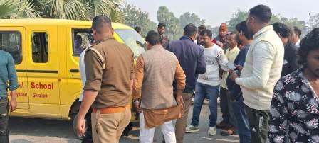 गाजीपुर। बहरियाबाद उदंती नदी पुल पर गुरुवार को एक स्कूल वैन और बाइक की जोरदार टक्कर हो गई। हादसे में बाइक सवार दो युवक गंभीर रूप से घायल हो गए, जबकि स्कूल वैन में सवार बच्चे और चालक सुरक्षित रहे। घायलों की पहचान बैरख निवासी 28 वर्षीय दिनेश पुत्र सोमारु और उसके बहनोई औराई कला बलिया निवासी 27 वर्षीय गोलू पुत्र जयप्रकाश के रूप में हुई है। उन्हें बेहोशी की हालत में ग्रामीणों की मदद से एम्बुलेंस द्वारा सैदपुर सीएचसी भेजा गया। बाइक पर सवार तीसरा युवक, जलालपुर धनी निवासी मन्नू पुत्र बंशी, जो दिनेश का चाचा बताया जा रहा है, को हल्की चोटें आईं और वह घटना के बाद मौके से फरार हो गया। यह स्कूल वैन कृष्णा सन साइन कॉन्वेंट स्कूल कादीपुर बहरियाबाद की थी और बच्चों को गहनी तथा उकरांव गांव छोड़ने जा रही थी। टक्कर से स्कूल वैन का दाहिना हिस्सा आगे से क्षतिग्रस्त हो गया। सूचना पाकर पहुंचे बहरियाबाद थानाध्यक्ष कृष्ण प्रताप सिंह ने क्षतिग्रस्त स्कूल वैन तथा बाइक को कब्जे में ले लिया। स्कूल वैन चालक यशवंत सोनकर ने बताया कि वह और गाड़ी में बैठे बच्चे बाल-बाल बच गए। मौके पर मौजूद लोगों और पुलिस के अनुसार, स्कूल वैन अपनी सही दिशा में जा रही थी, लेकिन सामने से आ रही अनियंत्रित बाइक गलत दिशा से आकर वैन से टकरा गई। ग्रामीणों ने आरोप लगाया कि बाइक सवार तीनों युवक नशे में धुत थे, जिसके कारण यह हादसा हुआ।