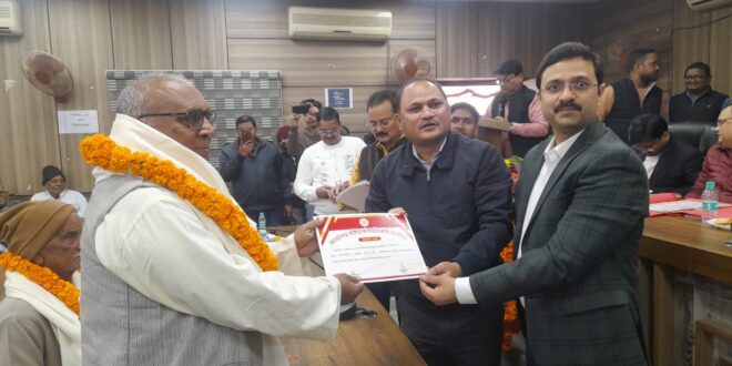 गाजीपुर। जिला पंचायत सभागार में पेंशनर्स की समस्याओं के निस्तारण हेतु जिलाधिकारी अविनाश कुमार द्वारा नामित अपर जिलाधिकारी वि०/रा० दिनेश कुमार की अध्यक्षता में पेंशनर्स दिवस का आयोजन किया गया। पेंशनर दिवस के अवसर पर जनपद के कुल वयोवृद्ध 20 पुरूष एव 05 महिला पेंशनर को अपर जिलाधिकारी वि0रा0 एवं वरिष्ठ कोषाधिकारी मंगलेश सिंह पालीवाल ने संयुक्त रूप से माल्यार्पण कर अंगवस्त्र एवं प्रशस्ति पत्र देकर सम्मानित किया। इस दौरान अपर मुख्य चिकित्साधिकारी एवं वित्त एवं लेखाधिकारी बेसिक शिक्षा/माध्यमिक एवं जिला पंचायत वित्तीय परामर्श दाता एवं कुछ विभागों के आहरण/वितरण अधिकारी के साथ-साथ समस्त पेंशनर्स संघ के पदाधिकारी एवं पेंशनर्स उपस्थित रहें। जिसमें मौजूद पेंशनर्स ने बारी-बारी से अपनी समस्याओं को रखा। इनमें अधिकांश की समस्या अपने-अपने विभागों से सम्बन्धित थी। इस मौके पर अपर जिलाधिकारी वि०/रा० दिनेश कुमार ने कहा कि सभी समस्याओं का समयबद्ध निस्तारण किया जाएगा। निस्तारण के लिए सम्बन्धित विभाग को निर्देशित कर दिया गया है। वरिष्ठ कोषाधिकारी मंगलेश सिंह पालीवाल ने बताया की वयोवृद्ध पेंशनर्स को जीवित प्रमाण-पत्र जमा करने के लिए कोषागार आने की आवश्यकता नही है। बल्कि शासन द्वारा उपलब्ध कराए गए विकल्पों के माध्यम से डिजीटल रूप से जीवित प्रमाण-पत्र प्रेषित किया जा सकता है। यदि पेंशनर को 80 वर्ष उम्र पूर्ण करने पर अतिरिक्त लाभ मिल चुका है तब उसके बाद के लाभ के लिए बार-बार कोषागार आने की जरूरत नही है, अपने आप साफ्टवेयर के माध्यम से अपडेट हो जाएगा। इस दौरान पेंशनर्स एसोसिएशन के अध्यक्ष मुक्तेश्वर प्रसाद श्रीवास्तव ने मेडिकल बिल और पेशनर भवन प्रकरण को रखा। इस मौके पर अम्बिका दूबे एवं अन्य पेंशनरर्स ने भी अपनी-अपनी विचार व्यक्त किये। संचालन अनिल कुमार श्रीवास्तव ने किया, कार्यक्रम को सफल बनाने में कोषागार कर्मचारी राहुल, फहिम अहमद, विनोद, संजीव कुमार, दुर्गेश बहादुर विवेक, राजीव तिवारी, जितेश सिंह, संजय कुमार, आफताब आदि का उल्लेखनीय योगदान रहा। कार्यक्रम का समापन सम्बोधन एवं आभार वरिष्ठ कोषाधिकारी ने व्यक्त किया ।