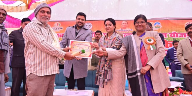 गाजीपुर! पूर्व प्रधानमंत्री एवं भारत रत्न स्व0 चौधरी चरण सिंह के जन्म दिवस पर किसान सम्मान दिवस का आयोजन कृषि विज्ञान केन्द्र पी0जी0 कालेज गोराबाजार में किया गया। कार्यक्रम में किसानों को सम्बोधित करते हुये जिलाधिकारी अविनाश कुमार ने कहा कि अब खेती किसानी वैसी नही रह गयी है जैसा कि हमारे पूर्वज करते थे। अब कृषि को व्यवसाय समझ कर किसानों को अधिकतम लाभ दिलाने वाले कृषि से सम्बद्ध विभिन्न क्षेत्रों में आगे बढ़ना होगा। उन्होने अपनी पिछली तैनातियों के दौरान विभिन्न नामचीन किसानों और समारोह में स्टाल लगाये हुये कई प्रगतिशील किसानों का उदाहरण देते हुये बताया कि किसान परम्परागत खेती धान, गेहू की खेती से आगे नही बढ पा रहे है तो इसका एक मात्र कारण उनका जोखिम मोल लेने की कम क्षमता है। उन्होने ऐसे छोटी जोत वाले किसानों का आहवान किया कि वे कृषक उत्पादक संगठनों से जुडकर एक शसक्त प्लेटफार्म का सहारा और सुविधा पा सकते है।आगे उन्होने कहा कि किसान सौ फिसदी अंक पाने के बावजूद महज इसलिए फेल साबित हो रहा है क्योकि उसके पास उचित बाजार नही है। उत्पादन करना तो आसान है लेकिन बिक्री के लिए बाजार की सुलभता एवं गारंटी अब सबसे अधिक महत्वपूर्ण है। उन्होने विभिन्न अधिकारियों को निर्देशित करने के साथ-साथ एफ0पी0ओ0 से भी आहवान किया कि वे मिल बैठकर इसका निदान खोजें। मुख्य अतिथि नगर पालिका परिषद अध्यक्ष सरिता अग्रवाल द्वारा बताया गया कि यहॉ प्रगतिशील किसानों के स्टाल पर जाकर वार्ता करने और सफलता की कहानी जानने-समझने के बाद सहज ही यह विश्वास होता है कि कृषि विकास के क्षेत्र में बहुत से उल्लेखनीय कार्य हुये है। कार्यक्रम की अध्यक्षता कर रही सपना सिंह जिला पंचायत अध्यक्ष ने पुरस्कृत किये गये किसानों को बधाई देते हुये कहा कि उनके अनुकरण से निश्चित ही अन्य किसान भी प्रेरित होकर कुछ नया करने का प्रयत्न करेंगें। किसान सम्मान समारोह में कृषि, उद्यान, पशुपालन एवं दुग्ध विकास के क्षेत्र में सर्वोच्च उत्पादकता प्राप्त करने वाले 36 कृषकों को प्रशस्ति पत्र एवं अंगवस्त्र देकर जिलाधिकारी, जिला पंचायत अध्यक्ष एवं नगर पालिका परिषद अध्यक्ष द्वारा पुरस्कृत किया गया। इनके अतिरिक्त 07 अन्य कृषक जिनमें एफ0पी0ओ0 का सर्वाधिक टर्न ओवर प्राप्त करने वाले रूद्र प्रताप सिंह, औषधीय पौधों की ख्ेाती एवं उत्पाद की बिक्री में जनपद को पहचान दिलाने वाले रंग बहादुर सिंह, श्री अन्न के विभिन्न उत्पादों एवं विशेष प्रकार की दही की ब्रान्डिंग करने वाले रामधारी सिंह यादव, महिला कृषि उद्यमी के रूप में अपनी पहचान बनाने वाली श्रीमती अंजू चतुर्वेदी, जनपद में सेव की खेती के बाद कीवी उत्पादन की ओर अग्रसर एवं प्राकृतिक खेती योजना के जनपदीय 