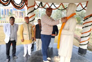 लखनऊ। मदन मोहन मालवीय प्रौद्योगिकी विश्वविद्यालय, गोरखपुर में आज दो भारत रत्नों पंडित मदन मोहन मालवीय जी की 164वीं जयंती और पूर्व प्रधानमंत्री स्व. अटल बिहारी वाजपेयी जी की 101वीं जयंती श्रद्धापूर्वक और उल्लास के साथ मनायी गई। इस अवसर पर विश्वविद्यालय के अटल भवन प्रांगण में हवन, पूजन का कार्यक्रम हुआ। कुलपति ने सर्वप्रथम परिसर स्थित पंडित मालवीय जी की प्रतिमा पर माल्यार्पण एवं पुष्पार्चन किया। तत्पश्चात, अटल भवन स्थित बिस्मिल पार्क में बिस्मिल शिला पर श्रद्धा सुमन अर्पित किए। इसके बाद अटल भवन प्रांगण में पंडित मालवीय और स्व. अटल बिहारी वाजपेयी के चित्र पर माल्यार्पण हुआ। तत्पश्चात, माननीय कुलपति, कुलसचिव श्री चंद्र प्रकाश प्रियदर्शी सहित विभिन्न शिक्षकों और कर्मचारियों ने विधिवत पूजन हवन कर पंडित मालवीय एवं स्व. अटल बिहारी वाजपेयी जी को श्रद्धांजलि अर्पित की। प्रसाद वितरण से कार्यक्रम संपन्न हुआ। इस मौके पर श्री सी पी प्रियदर्शी, प्रो वी के गिरि, प्रो बी के पांडेय, प्रो ए के मिश्र, प्रो वी एल गोले, प्रो ए के पांडेय, प्रो प्रभाकर तिवारी, प्रो डी एस सिंह, श्री बृजेश राम त्रिपाठी, डॉ पवन कुमार, श्री आर एन त्रिपाठी, श्री राहुल मिश्र, गरिमा यादव आदि मौजूद रहे।
