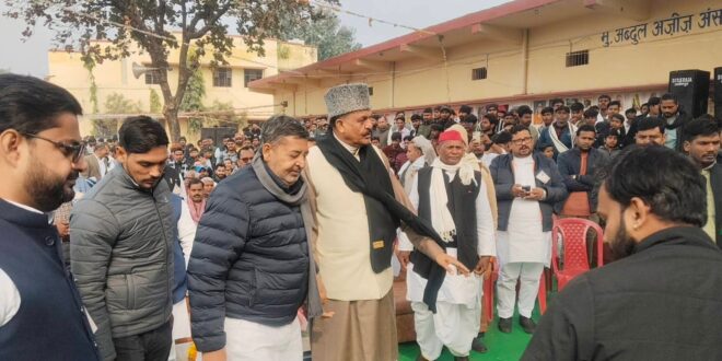 गाजीपुर। स्वतंत्रता संग्राम सेनानी व भारतीय राष्ट्रीय कांग्रेस के पूर्व अध्यक्ष डा.मुख्तार अहमद अंसारी की 145 वीं जयंती व डा.एम.ए.अंसारी इंटर कालेज, यूसुफपुर, मुहम्मदाबाद का वार्षिकोत्सव गुरुवार को विद्यालय प्रांगण में आयोजित किया गया। कार्यक्रम का शुभारंभ मुख्य अतिथि सांसद चन्दौली विरेन्द्र सिंह ने ध्वजारोहण के पश्चात डा.मुख्तार अहमद अंसारी के तैल चित्र पर पुष्प अर्पित करके किया। समारोह मे बोलते हुए मुख्य अतिथि सांसद विरेन्द्र सिंह ने डाo मुख्तार अहमद अंसारी को महान स्वतंत्रता संग्राम सेनानी बताते हुए कहा कि वे भारत ही नहीं विश्व के कई देशो मे अपनी सेवाएं प्रदान किया। उनके नाम पर स्थापित विद्यालय से पढ कर कई बच्चे देश मे अच्छे पदो पर तैनात है। आज के राजनीति परिवेश की चर्चा करते हुए उन्होंने ने कहा कि संसद मे बिपक्ष के सांसदो की आवाज दबा दी जाती है जिससे हमे जिस लिए हमारे क्षेत्र की जनता से सबसे बड़ी पंचायत मे हमे भेजा है उसकी वास्तविक समस्याओं को हम नहीं रख पाते है। विशिष्ट अतिथि बलिया के सांसद सनातन पाण्डेय ने कहा कि आज हमें काफी गर्व का अनुभव हो रहा है कि डा.मुख्तार अहमद अंसारी जैसे महान सख्सियत की जयंती समारोह में शामिल हुआ हूं। उन्होंने कहा कि यह इलाका देश को आजाद कराने से लेकर देश की सीमाओं की रक्षा करने वाले बलिदानियों के इतिहास से पटा पड़ा है। उन्होंने कहा डा.मुख्तार अहमद अंसारी के नाम पर संचालित इस विद्यालय में बच्चों विशेषकर छात्राओं के सांस्कृतिक कार्यक्रम की प्रस्तुति देखकर स्वत: यहां के अच्छे पठन पाठन के माहौल का पता चल गया। विद्यालय के प्रधानाचार्य सुजीत कुमार ने विद्यालय का रिपोर्ट कार्ड प्रस्तुत किया और कहा कि विद्यालय के छात्र छात्राओं ने शैक्षणिक परिणाम श्रेष्ठतम रहा तथा खेलकूद मे छात्रो ने जिले एवं मण्डल मे कई पदक प्राप्त किया।इस मौके पर विद्यालय के खेलकूद में जिला व प्रदेश स्तर के मेडल पाए खिलाड़ियों व विद्यालय में कक्षावार उच्च अंक पाने वाले छात्र-छात्राओं को अतिथियों के हाथों सम्मानित किया गया। इस मौके पर छात्र-छात्राओं ने काफी आकर्षक सांस्कृतिक कार्यक्रम प्रस्तुत किए,जिसे देखकर लोग जमकर तारीफ किए। इस मौके पर विधायक अब्बास अंसारी, विधायक सुहैब अंसारी मन्नू,पूर्व विधायक उमाशंकर कुशवाहा,सपा जिलाध्यक्ष गोपाल यादव,पूर्व ब्लाक प्रमुख शारदानंद राय,उमर अंसारी, मंसूर अंसारी,चेयरमैन रईस अहमद,रेयाज अंसारी, शिक्षक नेता चौधरी दिनेश चन्द्र राय, मुन्नन यादव, फेकू सिंह यादव,गोबर्धन सिंह यादव,बलिराम पटेल आदि मौजूद रहे। अध्यक्षता सांसद अफजाल अंसारी व संचालन विनय कुमार तिवारी ने किया।अन्त मे विद्यालय के प्राचार्य सुजीत कुमार ने आगन्तुकों क