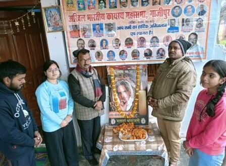 गाजीपुर। अखिल भारतीय कायस्थ महासभा गाजीपुर के तत्वावधान में महासभा के जिलाध्यक्ष अरूण कुमार श्रीवास्तव के चंदन नगर स्थित आवास पर महान गीतकार गोपाल दास नीरज जी की जयंती पर माल्यार्पण कार्यक्रम एवं विचार गोष्ठी आयोजित हुई। इस दौरान कार्यकर्ताओं ने उनके चित्र पर माल्यार्पण करके उन्हें याद किया। जिलाध्यक्ष अरुण श्रीवास्तव ने उनके व्यक्तित्व एवं कृतित्व पर विस्तृत रूप से प्रकाश डालते हुए कहा कि नीरज हिन्दी के साहित्यकार, कवि, शिक्षक के साथ ही महान गीतकार भी थे। वो पहले ऐसे व्यक्ति थे, जिन्हें सरकार ने शिक्षा और साहित्य के क्षेत्र में दो-दो बार पद्मश्री और पद्मभूषण से सम्मानित किया। फिल्मी गीत लेखन के लिए उन्हें तीन बार फिल्म फेयर पुरस्कार से नवाजा गया। उन्हें पिछले सपा सरकार में भाषा संस्थान का अध्यक्ष नामित कर कैबिनेट मंत्री का दर्जा दिया गया और यश भारती भी दिया गया था। उन्होंने कहा था कि उनकी रचनाओं के संसार का इतना बड़ा फलक है कि उनके चाहने वाले लोग आजीवन उन्हें अपने दिलों में जिंदा रखेंगे। इस मौके पर मोहनलाल, अनूप श्रीवास्तव, अश्विनी श्रीवास्तव, सुधांशु, चन्द्र प्रकाश श्रीवास्तव, मनीष श्रीवास्तव, हिमांशु, प्रियांशु, हर्ष, आर्यन, मेघा आदि रहे। संचालन अरूण सहाय ने किया।