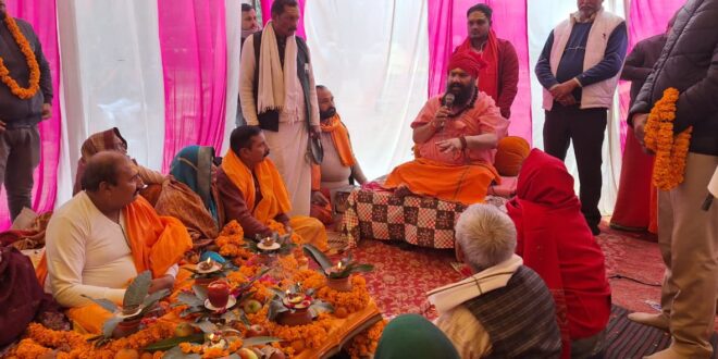 गाजीपुर। ग्राम हुरमुजपुर में आयोजित रामहित कार्यक्रम में सिद्धपीठ हथियाराम के पीठाधिपति महामंडलेश्वर स्वामी भवानीनंदन यति महाराज ने सेवा, सद्भाव और धर्म का संदेश दिया। उन्होंने मानवता को सर्वोपरि बताते हुए समाज को एकजुट करने वाले ऐसे कार्यक्रमों की सराहना की। एक दिवसीय रामहित कार्यक्रम में पहुंचे महामंडलेश्वर भवानीनंदन यति महाराज का ग्रामवासियों ने बैंड बाजा और फूल मालाओं से भव्य स्वागत किया।अपने आशीर्वचन में महामंडलेश्वर भवानीनंदन यति महाराज ने विशाल श्रद्धालु जनसमूह को संबोधित करते हुए कहा कि रामभक्ति, सनातन संस्कृति और सामाजिक सद्भाव जीवन को सही दिशा देने वाले मूल स्तंभ हैं। उन्होंने भगवान श्रीराम के आदर्शों पर प्रकाश डालते हुए बताया कि मर्यादा पुरुषोत्तम श्रीराम का जीवन त्याग, सेवा, सत्य और धर्म का अनुपम उदाहरण है।स्वामी महाराज ने बताया कि रामहित कार्यक्रम का मुख्य उद्देश्य समाज में धर्म, संस्कार और नैतिक मूल्यों को सुदृढ़ करना है, ताकि आने वाली पीढ़ी को सही मार्गदर्शन मिल सके। इससे गुरु-शिष्य परंपरा और अधिक सशक्त होती है।कार्यक्रम के दौरान सत्संग, भजन-कीर्तन एवं धार्मिक चर्चा के माध्यम से गांवों में आध्यात्मिक चेतना का संचार किया गया। इस अवसर पर स्वामी अभयानंद यति, शिवानंद सिंह उर्फ झुन्ना सिंह, विपिन कुमार पाण्डेय, संतोष कुमार सिंह, उदयभान सिंह, अशोक पाण्डेय, राजेश कुमार पाण्डेय, विनोद सिंह, सूर्यभान सिंह, अरविंद सिंह, नर्वदेश्वर सिंह, रामजी यादव, अश्वनी, अनिल सिंह, शांभवी सिंह, संगीता सिंह, हेमलता सिंह, राम अवध सिंह सहित बड़ी संख्या में श्रद्धालु एवं ग्रामीण उपस्थित रहे।इस दौरान ग्रामवासी सत्यनारायण सिंह के पुत्र संजीव सिंह की बेटी शांभवी सिंह ने स्वयं द्वारा बनाए गए महामंडलेश्वर के चित्र को उन्हें ही भेंट किया, जिसकी सराहना की गई। इस दौरान गांव के पद्मकांत पाण्डेय, संजीव सिंह, रामअवध सिंह, रामधनी यादव, आलोक सिंह, तेरास सिंह, रिंकू पाण्डेय, विक्रमादित्य शर्मा, रमेश पाण्डेय सहित 11 जोड़े ने गुरु दीक्षा ग्रहण किया। जखनियां से सादात होते हुए वाराणसी को जाने वाली रोडवेज बस का स्टॉपेज अब हुरमुजपुर में भी होगा। इस बात की घोषणा रोडवेज की आर एम विमला देवी ने बुधवार को की। वह हुरमुजपुर में आयोजित रामहित यात्रा कार्यक्रम के दौरान महामंडलेश्वर स्वामी भवानीनन्दन यति महाराज से आशीर्वाद लेने पहुंची थी, जहां ग्रामवासियों की मांग पर महामंडलेश्वर ने भी इसकी संस्तुति की, तो आरएम ने अगले दिन से स्टॉपेज किए जाने की अनुमति दी।