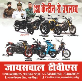 गाजीपुर। जिले के रक्षा सेवाओं से जुड़े जवानों, पूर्व सैनिकों एवं पात्र सीएसडी लाभार्थियों के लिए एक बड़ी सुविधा की शुरुआत की गई है। जायसवाल टीवीएस, महाराजगंज, गाजीपुर में अब कैंटीन स्टोर्स डिपार्टमेंट (CSD) के माध्यम से टीवीएस टू-व्हीलर की खरीद सुविधा प्रारंभ हो गई है। इस नई सुविधा के अंतर्गत भारतीय सेना, नौसेना, वायुसेना, अर्धसैनिक बलों एवं भूतपूर्व सैनिकों को सीएसडी निर्धारित दरों पर टीवीएस की विभिन्न लोकप्रिय दोपहिया गाड़ियों की खरीद पर ₹20000/-. तक का लाभ मिलेगा। इससे पात्र लाभार्थियों को कम कीमत, भरोसेमंद ब्रांड और सरल प्रक्रिया का सीधा फायदा मिलेगा। इस अवसर पर जायसवाल TVS के एम डी सुभीत जायसवाल ने बताया कि सीएसडी लाभार्थियों की सुविधा के लिए शोरूम में अलग से मार्गदर्शन एवं सहयोग व्यवस्था की गई है, जिससे वाहन चयन से लेकर डिलीवरी तक की प्रक्रिया आसान और पारदर्शी बनी रहे। सीएसडी के माध्यम से वाहन खरीदने के इच्छुक लाभार्थी आवश्यक दस्तावेजों के साथ जायसवाल टीवीएस, महराजगंज या मालगोदाम रोड, गाजीपुर शोरूम पर संपर्क कर सकते हैं। यह पहल जिले के रक्षा कर्मियों के प्रति सम्मान एवं सुविधा को ध्यान में रखते हुए की गई है।