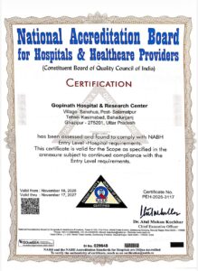 गाजीपुर। जनपद के कासिमाबाद तहसील अंतर्गत सलामतपुर स्थित गोपीनाथ हॉस्पिटल एंड रिसर्च सेंटर ने एक बड़ी उपलब्धि हासिल करते हुए NABH (National Accreditation Board for Hospitals & Healthcare Providers) से मान्यता प्राप्त कर ली है। यह प्रमाणपत्र अस्पताल को 18 नवम्बर 2025 से 17 नवम्बर 2027 तक के लिए वैध किया गया है। यह उपलब्धि न केवल अस्पताल बल्कि पूरे ग्रामीण क्षेत्र के लिए गर्व की बात है, क्योंकि अब ग्रामीण क्षेत्र के लोगों को भी राष्ट्रीय स्तर की गुणवत्ता वाली चिकित्सा सेवाएं अपने ही क्षेत्र में उपलब्ध होंगी। NABH से मान्यता प्राप्त होने के बाद अस्पताल में निम्नलिखित विभागों की सेवाएं प्रमाणित हो गई हैं: