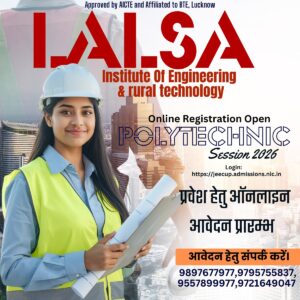 गाजीपुर। लालसा पॉलिटेक्निक (LALSA Institute of Engineering & Rural Technology) में तकनीकी शिक्षा का सुनहरा अवसर में शैक्षणिक सत्र 2026 के लिए पॉलिटेक्निक पाठ्यक्रमों में ऑनलाइन प्रवेश आवेदन प्रक्रिया निःशुल्क मार्गदर्शन के साथ प्रारम्भ की गयी है। संस्था के प्रबंध निदेशक ई. अजय यादव ने पूर्वांचल न्यूज डाट काम को बताया कि इच्छुक एवं योग्य अभ्यर्थी JEECUP (Joint Entrance Examination Council, Uttar Pradesh) की आधिकारिक वेबसाइट के माध्यम से अपना ऑनलाइन पंजीकरण कर सकते हैं। जो विद्यार्थी ऑनलाइन प्रक्रिया में किसी भी प्रकार की असुविधा महसूस करते हैं, वे संस्थान परिसर में आकर पूर्णतः निःशुल्क मार्गदर्शन एवं सहायता प्राप्त करते हुए अपना आवेदन करा सकते हैं। संस्थान द्वारा विद्यार्थियों को आवेदन से लेकर काउंसलिंग तक हर चरण में सहयोग प्रदान किया जायेगा । इस अवसर पर संस्था प्रबंधक अजय यादव ने विद्यार्थियों से अपील करते हुए कहा कि “तकनीकी शिक्षा आज के समय की सबसे बड़ी आवश्यकता है। पॉलिटेक्निक पाठ्यक्रमों के माध्यम से विद्यार्थी कम समय में व्यावहारिक ज्ञान प्राप्त कर रोजगार एवं आत्मनिर्भरता की ओर तेजी से अग्रसर हो सकते हैं। इच्छुक विद्यार्थी समय रहते पंजीकरण कर अपने उज्ज्वल भविष्य की मजबूत नींव रखें।” लालसा पॉलिटेक्निक हमारी संस्था को आधुनिक प्रयोगशालाओं, अनुभवी एवं समर्पित शिक्षकों तथा व्यावहारिक प्रशिक्षण के लिए जाना जाता है। यहाँ विद्यार्थियों को उद्योग-अनुकूल तकनीकी शिक्षा प्रदान कर उन्हें रोजगार एवं बेहतर करियर के लिए तैयार किया जाता है। प्रवेश से संबंधित अधिक जानकारी एवं निःशुल्क मार्गदर्शन हेतु 9897677977, 9795755837, 77070 31951, 9598945135 पर संपर्क करें।
