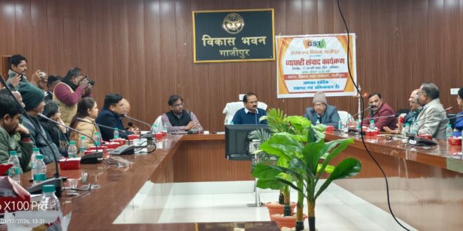 गाजीपुर! शासन द्वारा दिये गये निर्देश के क्रम में व्यापारी संवाद कार्यक्रम का आयोजन विकास भवन सभागार गाजीपुर में किया गया। कार्यक्रम की अध्यक्षता मुख्य विकास अधिकारी संतोष कुमार वैश्य गाजीपुर द्वारा किया गया। व्यापारी संवाद कार्यक्रम में जी. एस. टी. -2.0 सुधारों के प्रति जागरूकता हेतु उद्यमियों, करदाताओं एवं अन्य स्टेक होलडर्स के साथ संवाद स्थापित किया गया। जिसमें पंजीयन, रिटर्न फाईलिंग, समाधान योजना, व्यापारी दुर्घटना बीमा योजना, ईट भट्ठा से प्राप्त होने वाले राजस्व के संबंध में प्रोजक्टर के माध्यम से विस्तार पूर्वक चर्चा की गयी। व्यापारियों से संवाद के क्रम में व्यापारियों द्वारा समस्याओं के संबंध जो सुझाव दिये गये उनका संकलन किया गया। सुझावों में मुख्य रूप से हेल्प डेस्क स्थापित किये जाने तथा आनलाईन नोटिस के साथ मैन्यूवली प्रेषित किये जाने, तहसील स्तर पर संवाद कार्यक्रम आयोजित करने, ईट भट्ठा व्यवसायियों के लिये पाये के आधार पर समाधान योजना (जैसा कि वैट अधिनियम में लागू था) लाने तथा कर न देने वाले भट्ठों के संबंध में कार्यवाही कराये जाने का सुझाव दिया गया। कार्यक्रम में मुख्य रूप से सुरेन्द्र बहादुर संयुक्त आयुक्त (कार्यपालक) वाराणसी, उपायुक्त सर्वेश कुमार सिंह, जयसेन, विवेक मिश्रा, एवं सहायक आयुक्त प्रभात कुमार सिंह, श्रीमती प्रतिभा राय तथा राज्य कर अधिकारी विवेक मणि तिवारी, श्रीमती किरन पुष्कर एवं राज्य कर गाजीपुर के समस्त कर्मचारी तथा व्यापार मण्डल के विजय वर्मा, श्री लल्लन सिंह, अनिश अहमद, अशोक अग्रहरी, अच्छे लाल कुशवाहा, एवं टैक्स बार एसो० गाजीपुर के अध्यक्ष श्री बंसत सेठ, एवं अन्य पदाधिकारीगण तथा सम्मानित करदाता उपस्थित रहे। कार्यक्रम के अन्त में व्यापारी दुर्घटना बीमा योजना के लाभार्थी को सम्मानित किया गया। इलेक्ट्रानिक मीडिया से संबंधित मीडिया कर्मियों द्वारा कार्यक्रम का व्यापक रूप से कवरेज किया गया।